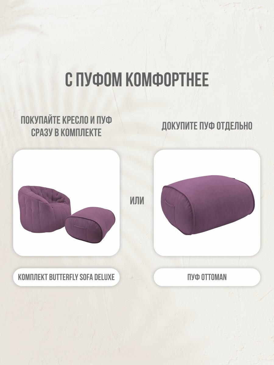 Бескаркасное мягкое кресло с оттоманкой aLounge - Butterfly Sofa Deluxe - Sakura Pink (велюр, фиолетовый) - лаунж мебель в гостиную, спальню, детскую, офис, на балкон