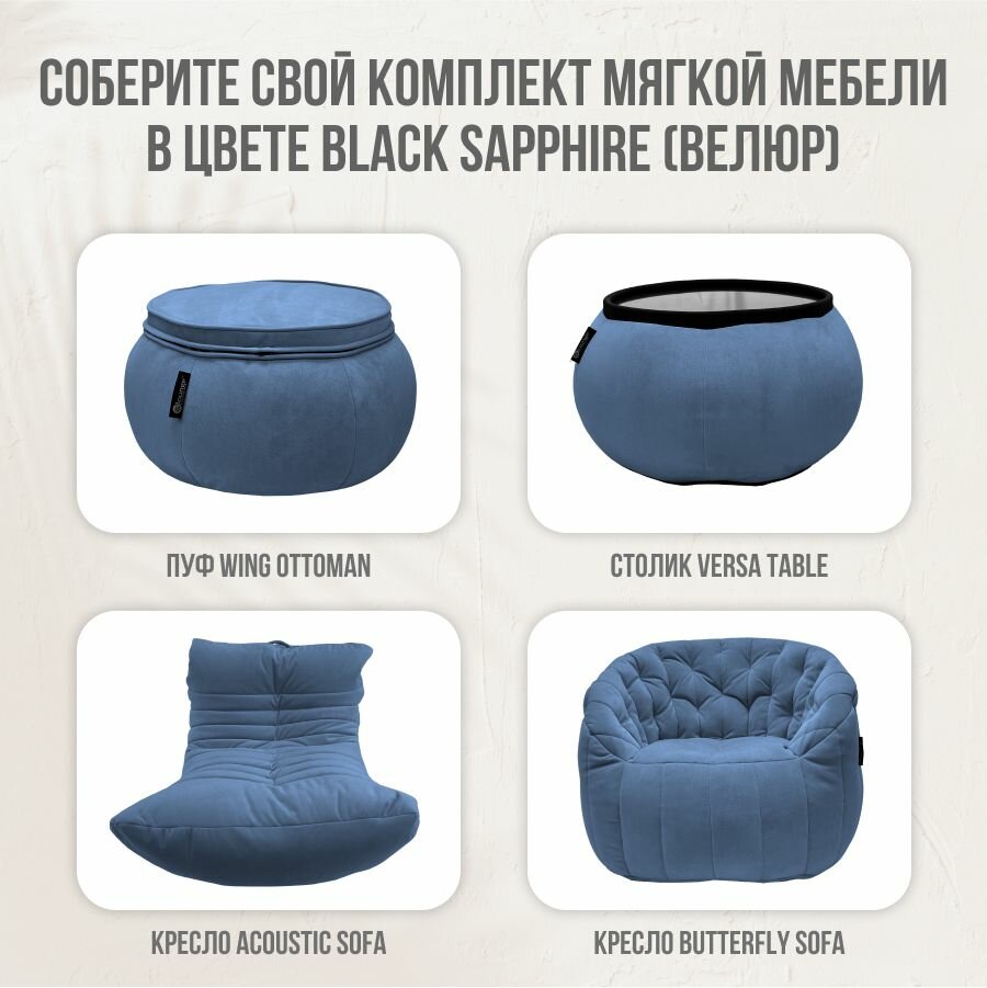 Бескаркасный пуф для ног aLounge - Wing Ottoman - Black Sapphire (велюр, черно-серый) - оттоманка к дивану или креслу