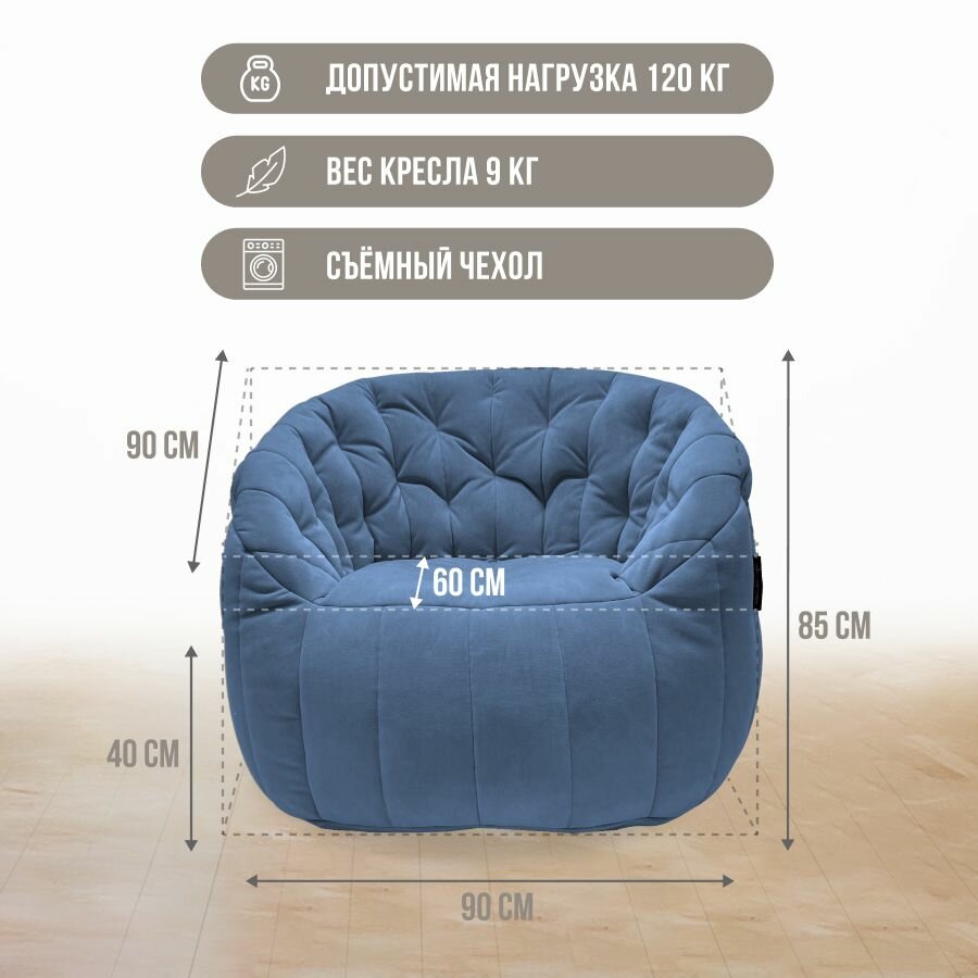 Современное кресло для отдыха aLounge - Tranquility Armchair - Blue Jazz (велюр, синий) - бескаркасная мягкая мебель в гостиную, спальню, зону ожидания