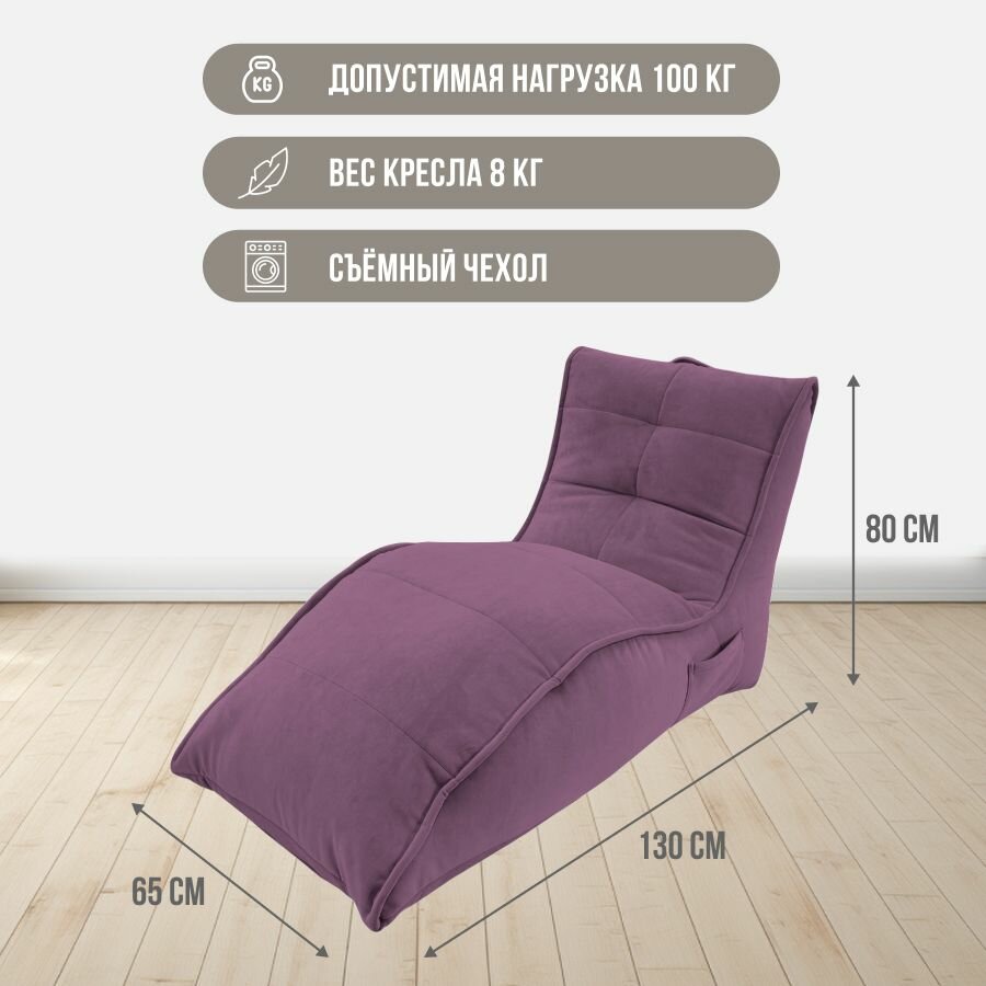 Бескаркасное кресло для отдыха с оттоманкой aLounge - Acoustic Lounge - Sakura Pink (велюр, фиолетовый) - лаунж мебель в гостиную, спальню, детскую, офис, на балкон