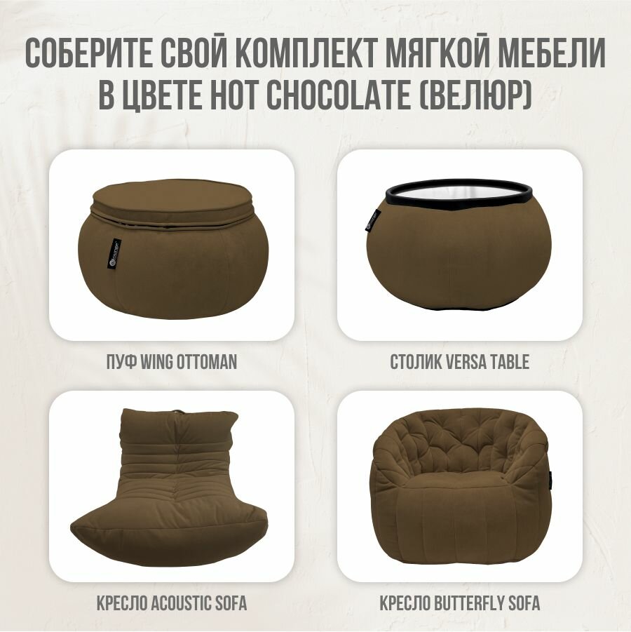 Бескаркасный пуф для ног aLounge - Wing Ottoman - Hot Chocolate (велюр, коричневый) - оттоманка к дивану или креслу