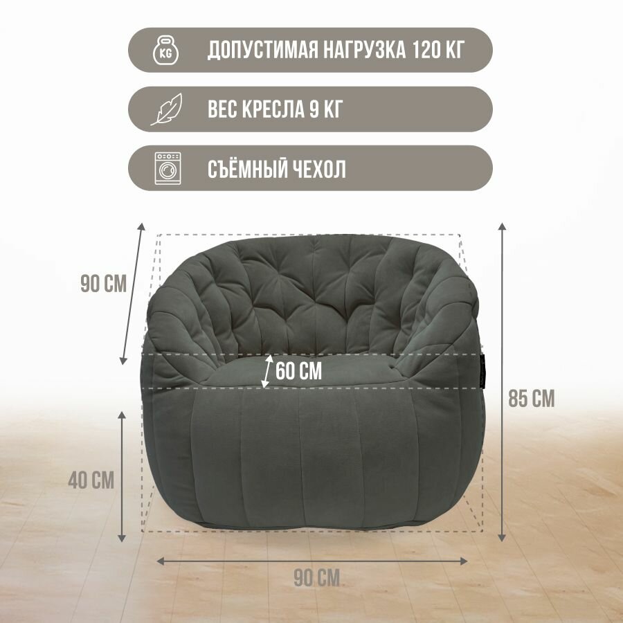 Современное кресло для отдыха aLounge - Tranquility Armchair - Luscious Grey (велюр, темно-серый) - бескаркасная мягкая мебель в гостиную, спальню, зону ожидания