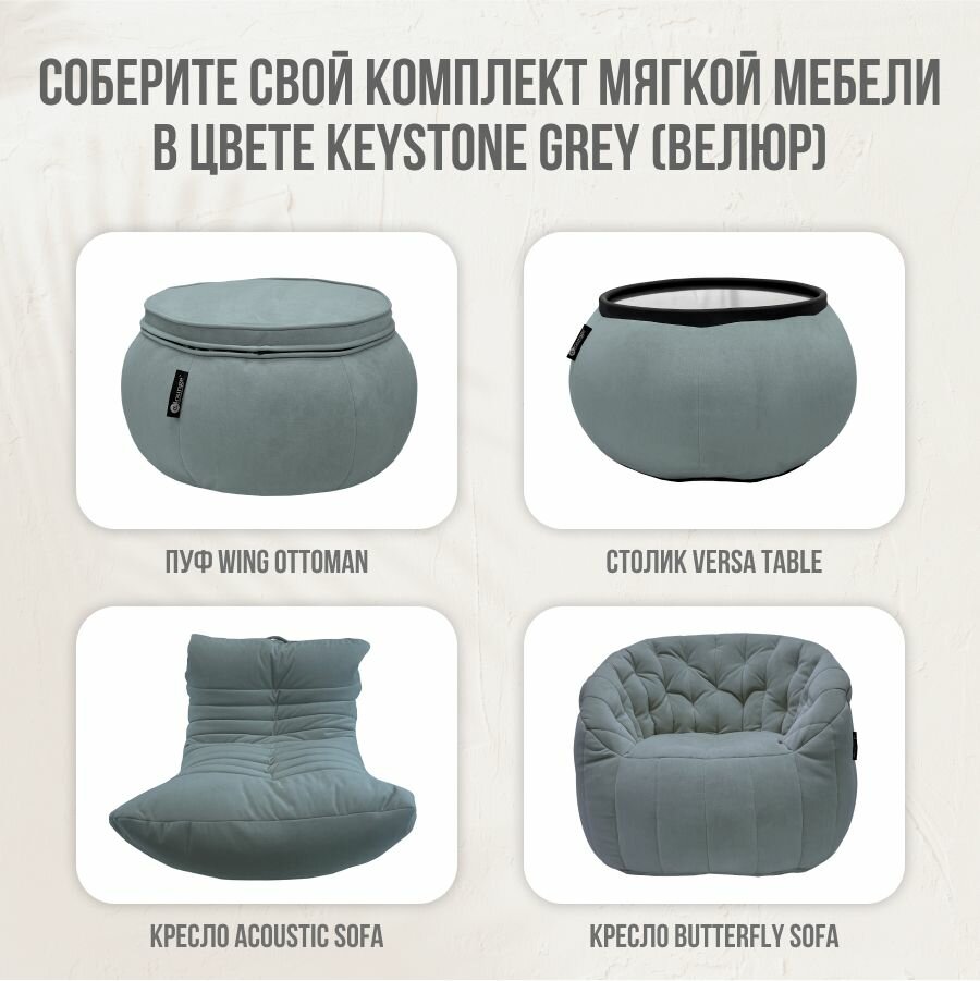 Бескаркасный пуф для ног aLounge - Wing Ottoman - Keystone Grey (велюр, серый) - оттоманка к дивану или креслу