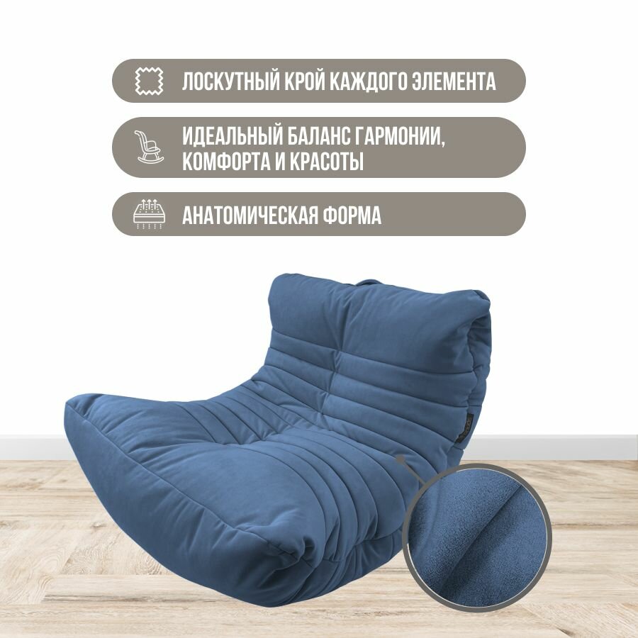 Современное кресло для отдыха aLounge - Tranquility Armchair - Blue Jazz (велюр, синий) - бескаркасная мягкая мебель в гостиную, спальню, зону ожидания