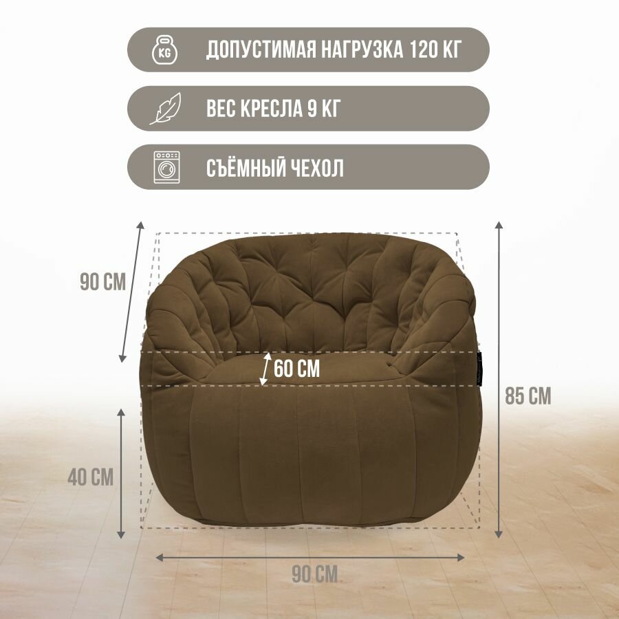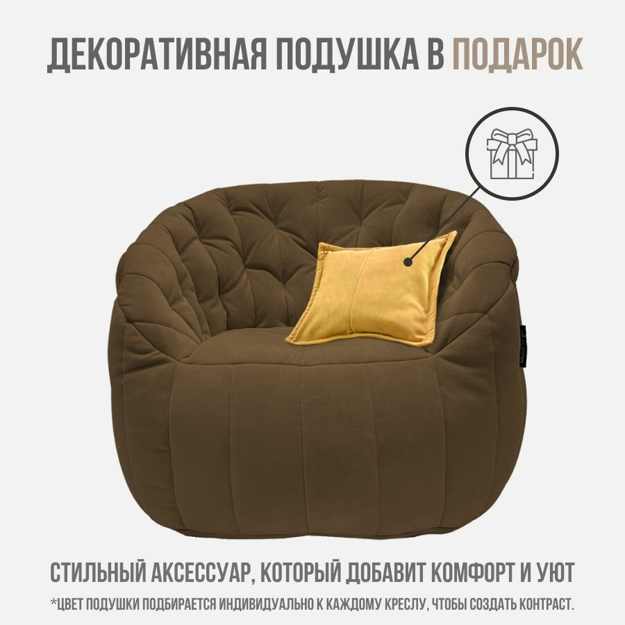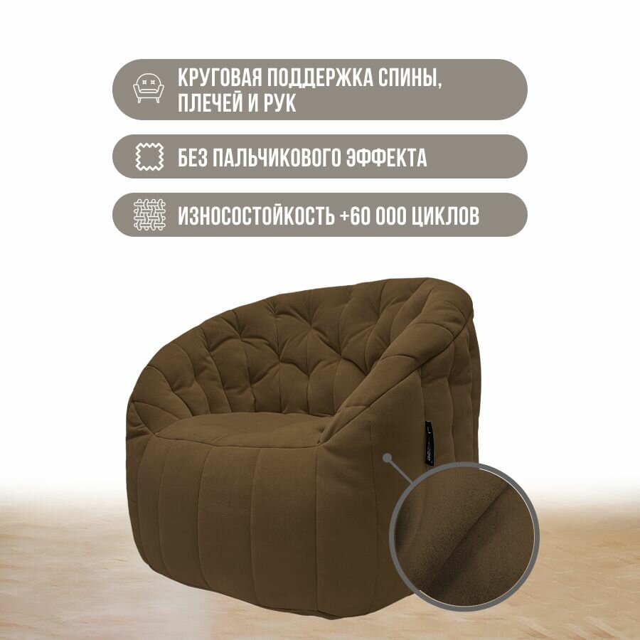 Современное кресло для отдыха aLounge - Tranquility Armchair - Hot Chocolate (велюр, коричневый) - бескаркасная мягкая мебель в гостиную, спальню, зону ожидания