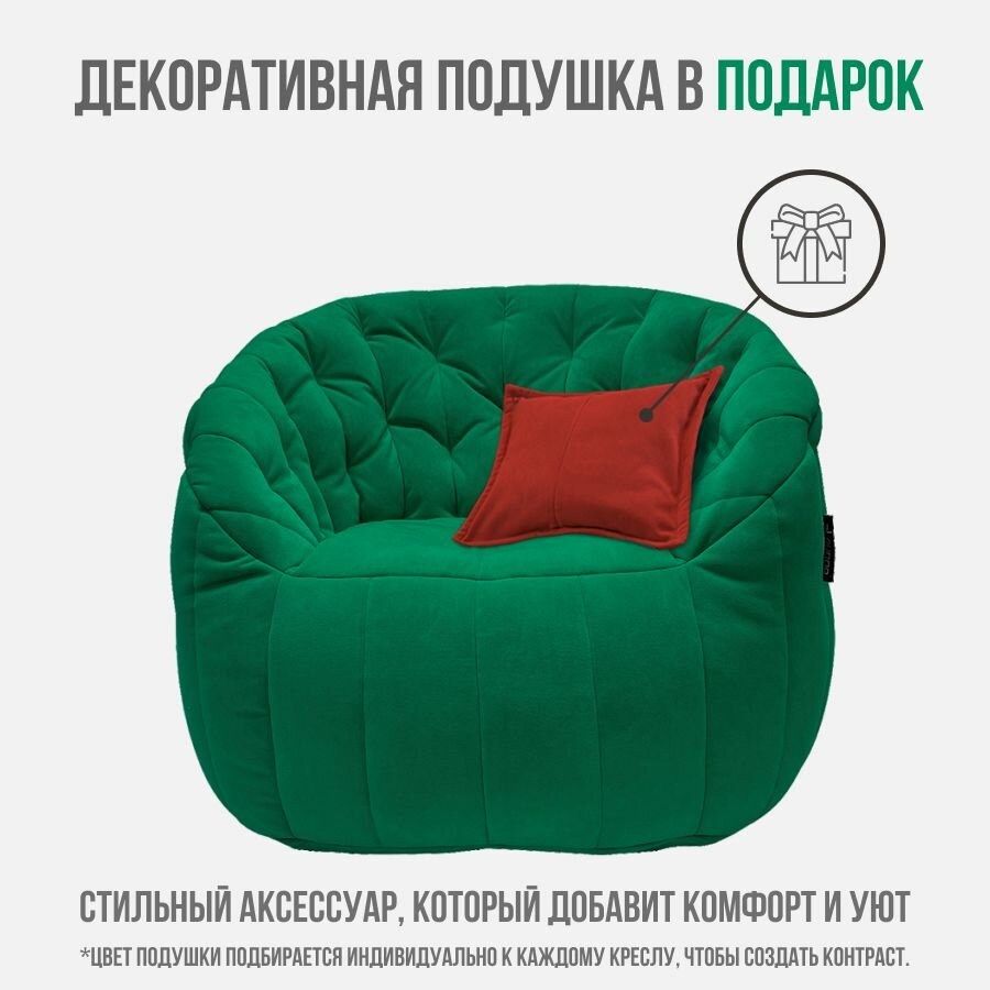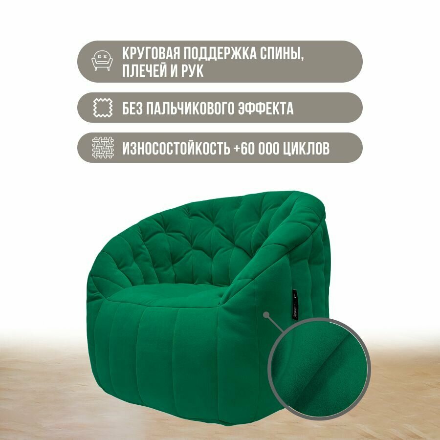 Современное кресло для отдыха aLounge - Tranquility Armchair - Forest Green (велюр, изумрудный) - бескаркасная мягкая мебель в гостиную, спальню, зону ожидания