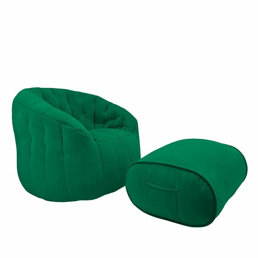 Бескаркасное кресло для отдыха с оттоманкой aLounge - Acoustic Lounge - Forest Green (велюр, изумрудный) - лаунж мебель в гостиную, спальню, детскую, офис, на балкон