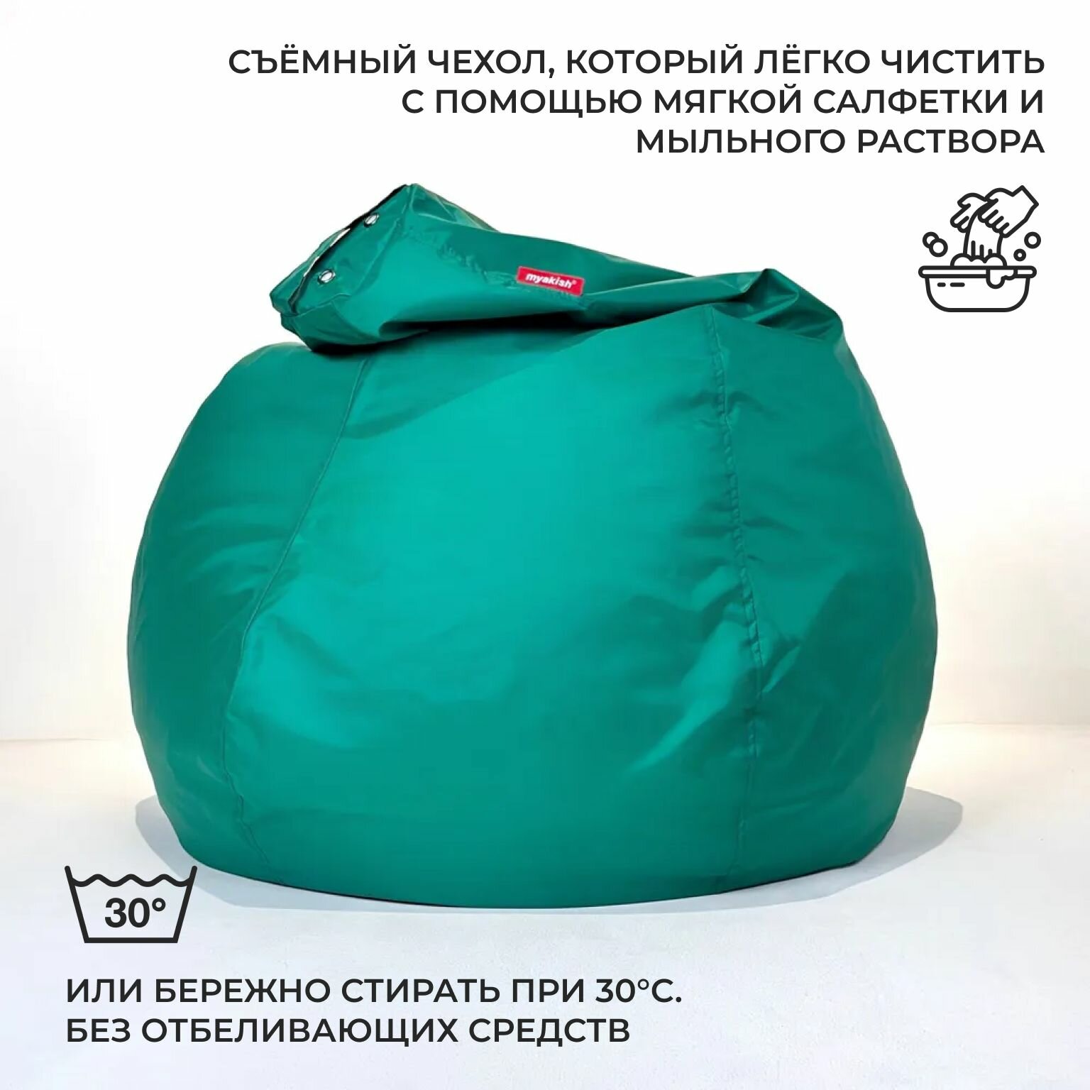 Кресло-мешок Myakish Оксфорд, бирюзовое, форма груши, 160л, максимальная нагрузка 100кг, L