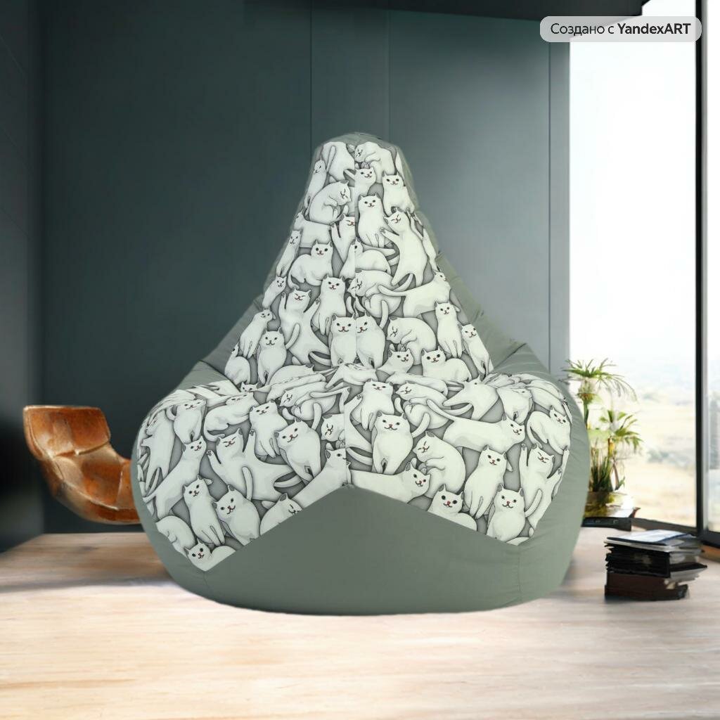 СохранитьКресло-мешок Груша Котики серый 120х80 размер XXL, Чудо Кресло, Велюр Оксфорд, ручка, люверс, молния, детский пуфик мешок интересное: