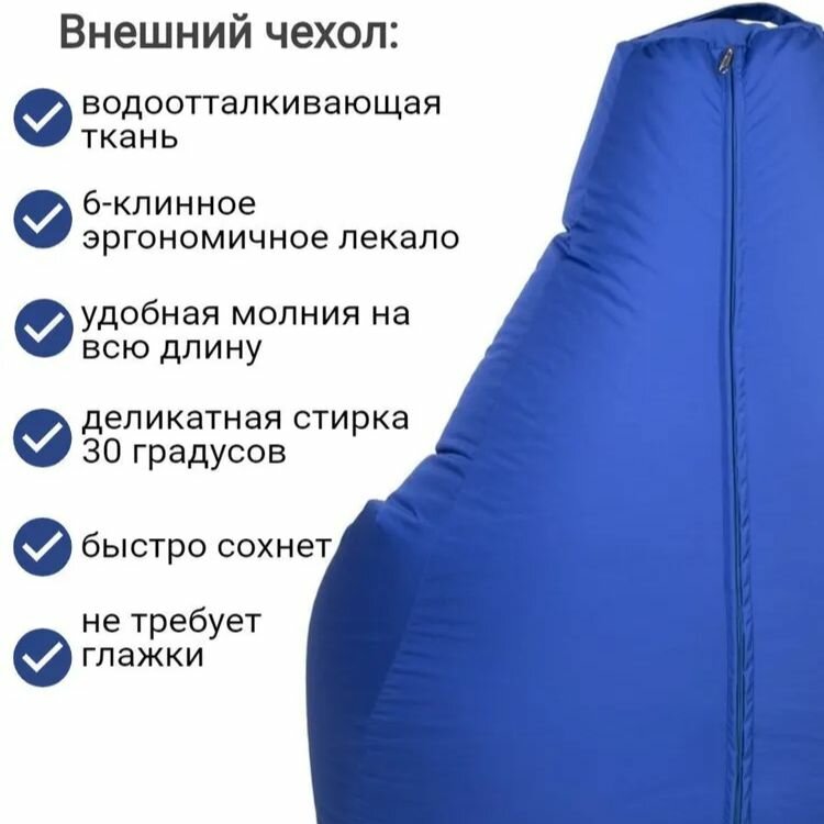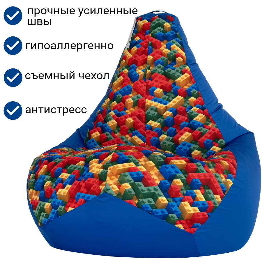 СохранитьКресло-Мешок груша Лего синий 120х80 размер XXL, Чудо Кресло, Велюр Оксфорд, ручка, люверс, молния, пуф мешок интересное: