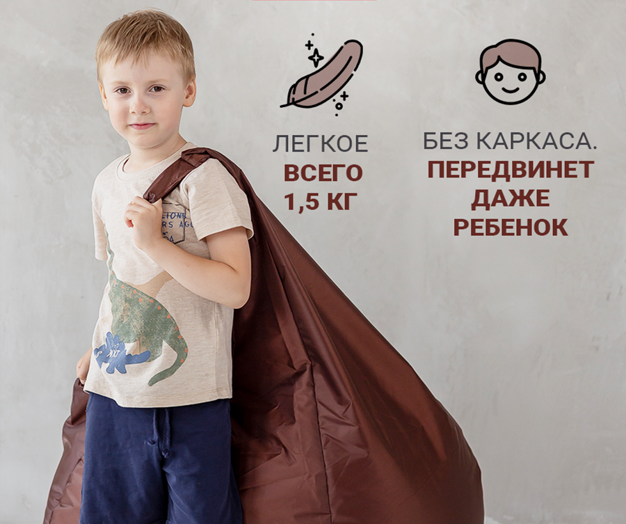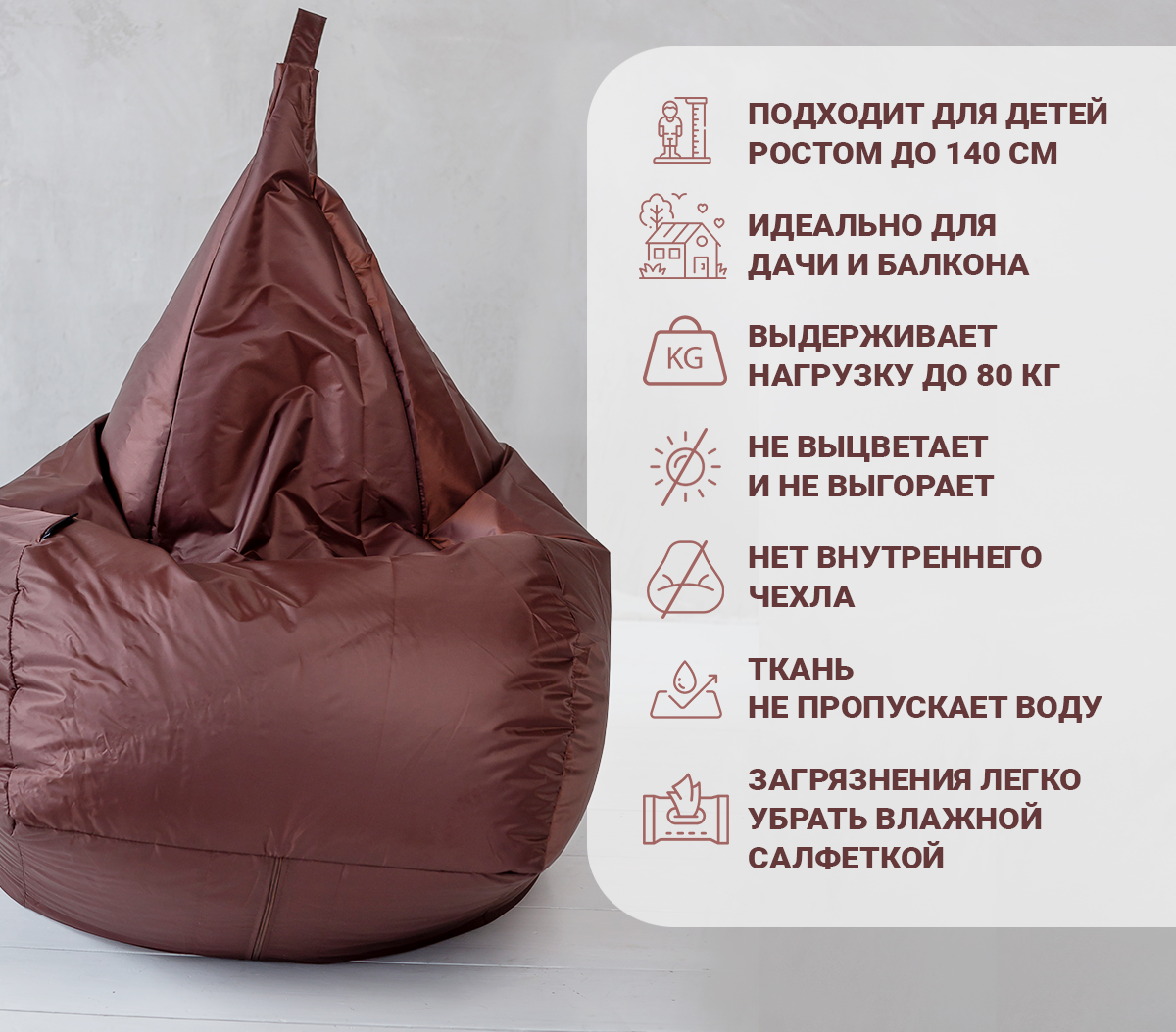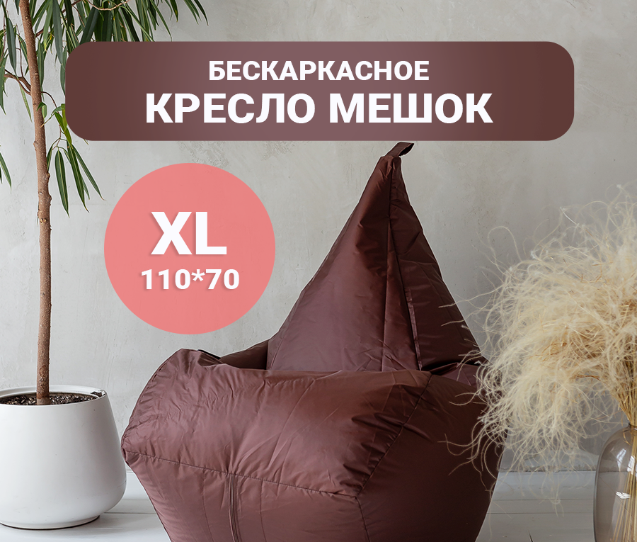 Кресло мешок Tamm, Бескаркасный пуф, Оксфорд, Коричневый Размер XL, 70*70*110 интересное:
