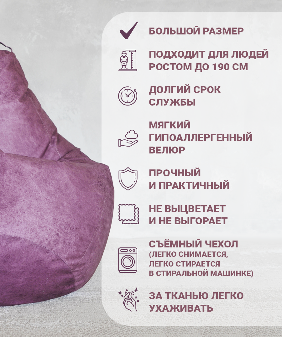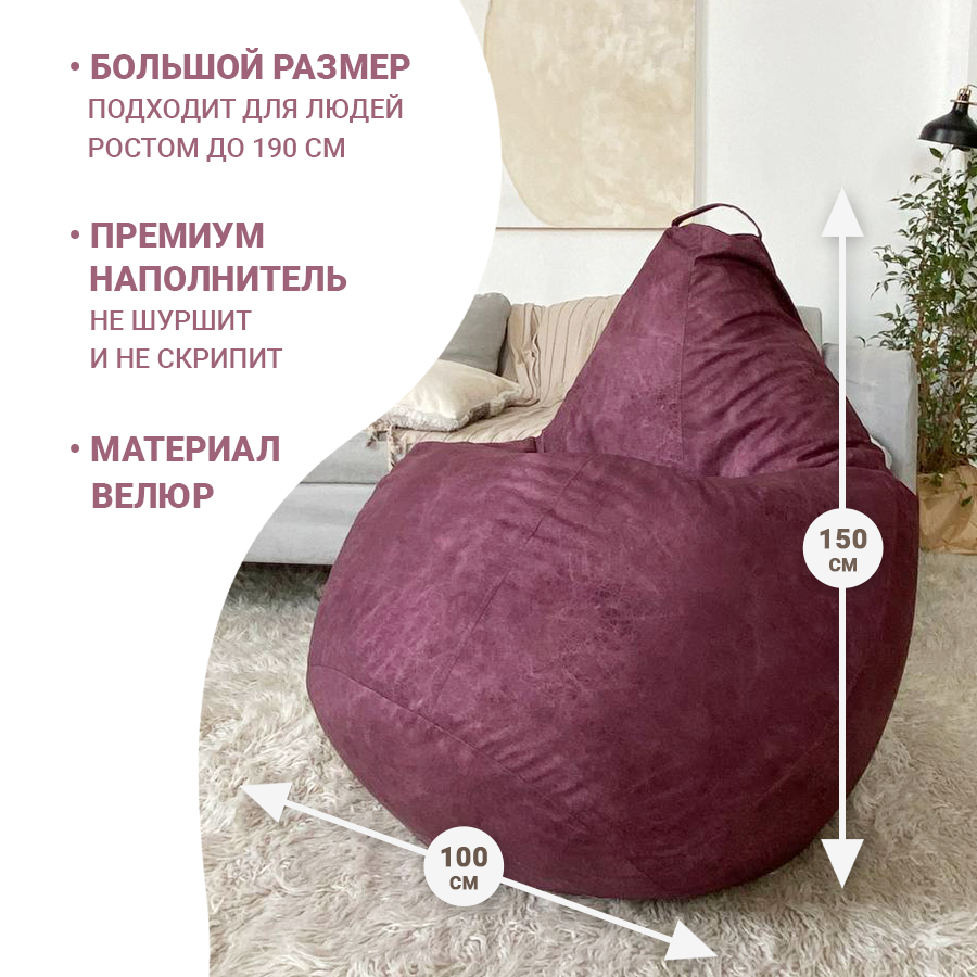 Кресло мешок Бескаркасный пуф Велюр TAMM Бордовый Размер XXXXL 150*100 интересное: