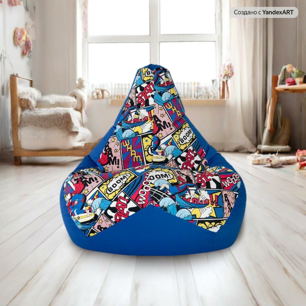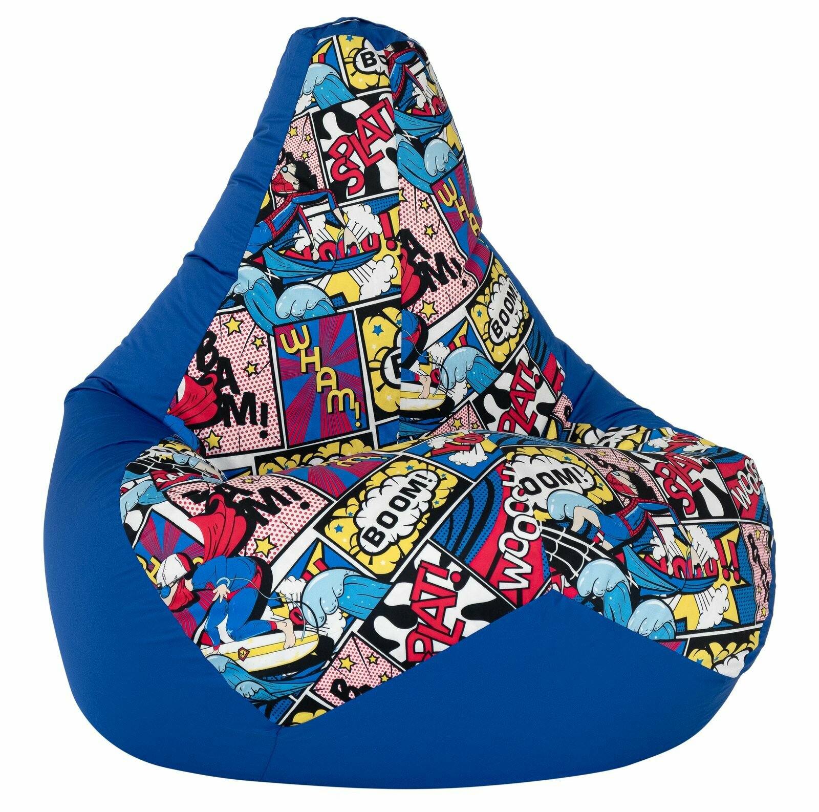 Кресло-мешок груша КосмоПсы синий 140х90 размер XXXL, Чудо Кресло, Велюр Оксфорд, ручка, люверс, молния, детский пуф