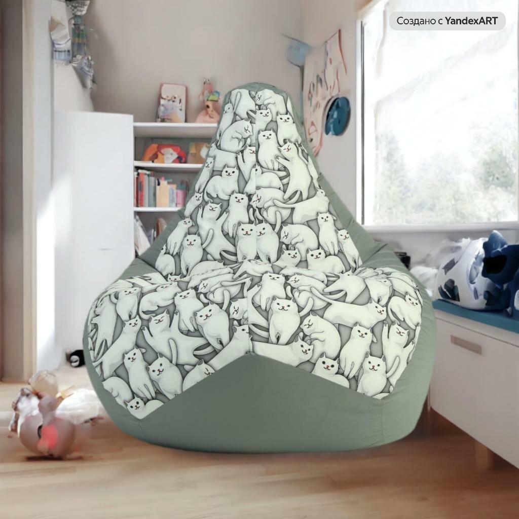 Кресло-мешок груша Котики бежевый 140х90 размер XXXL, Чудо Кресло, Велюр Оксфорд, ручка, люверс, молния, детский пуф