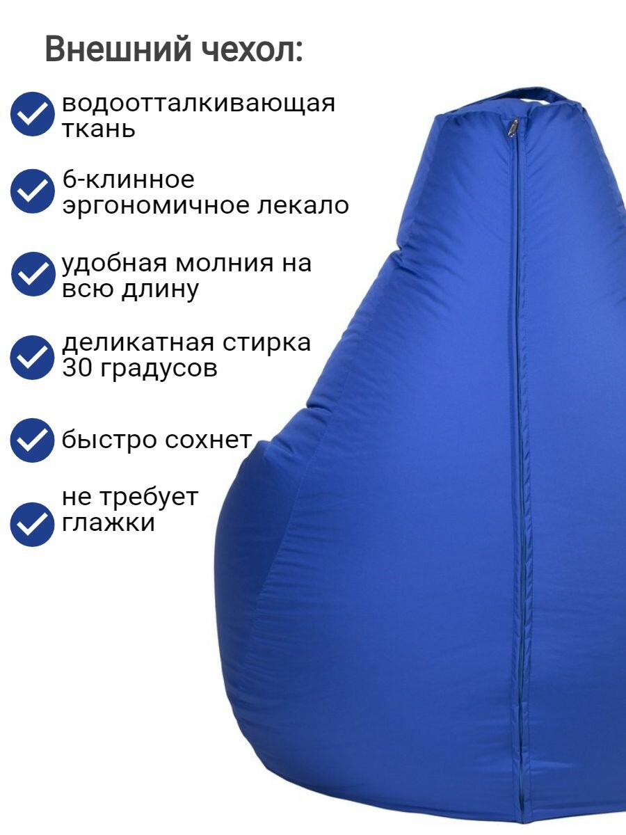 Кресло-Мешок груша Бэнг синий, Boom, 140х90 размер XXXL, Чудо Кресло, Велюр, Оксфорд, ручка, люверс, молния