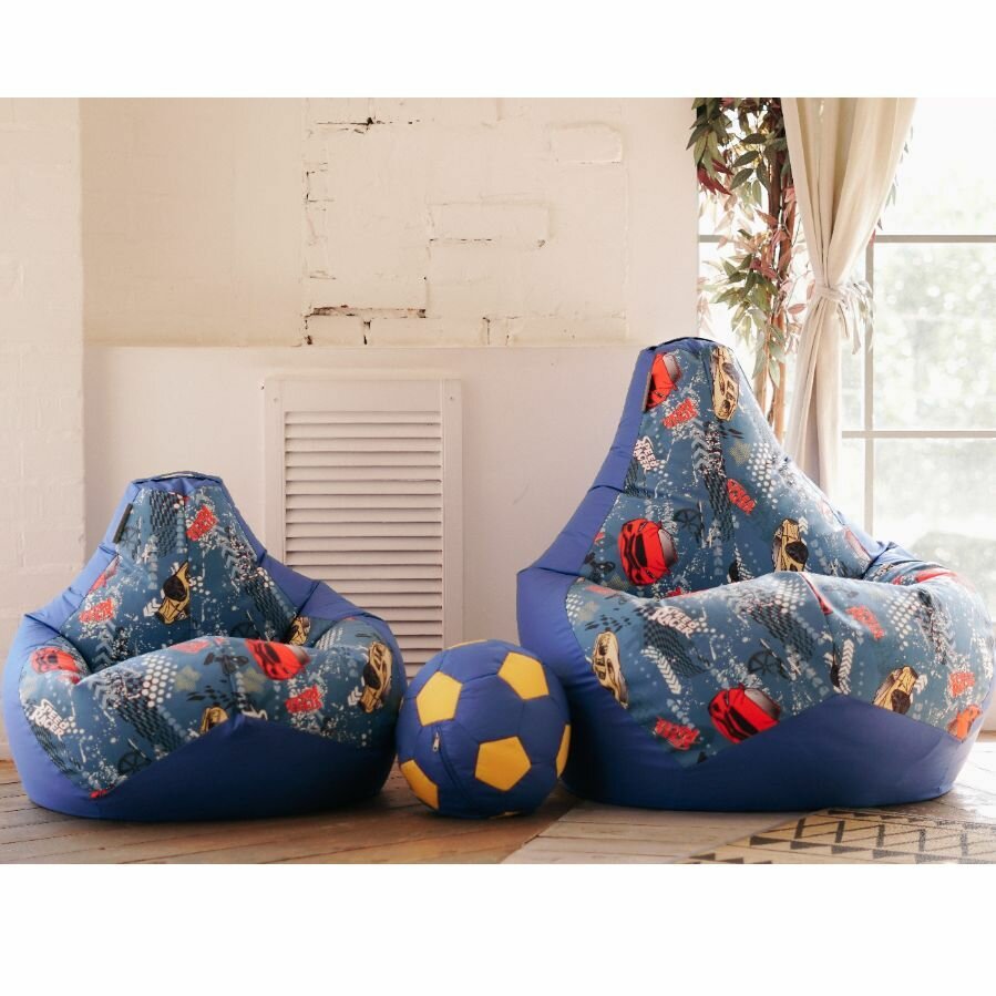 Кресло-мешок груша КосмоПсы синий 140х90 размер XXXL, Чудо Кресло, Велюр Оксфорд, ручка, люверс, молния, детский пуф