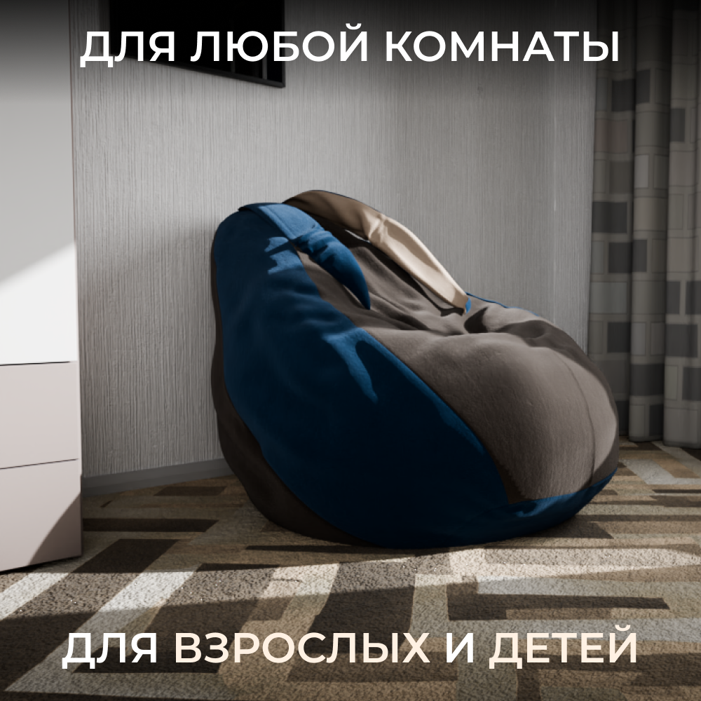 СохранитьКресло-мешок YORCOM "Банни", коричневый- синий. велютта 23-26 размер XXL, для детской и гостиной интересное: