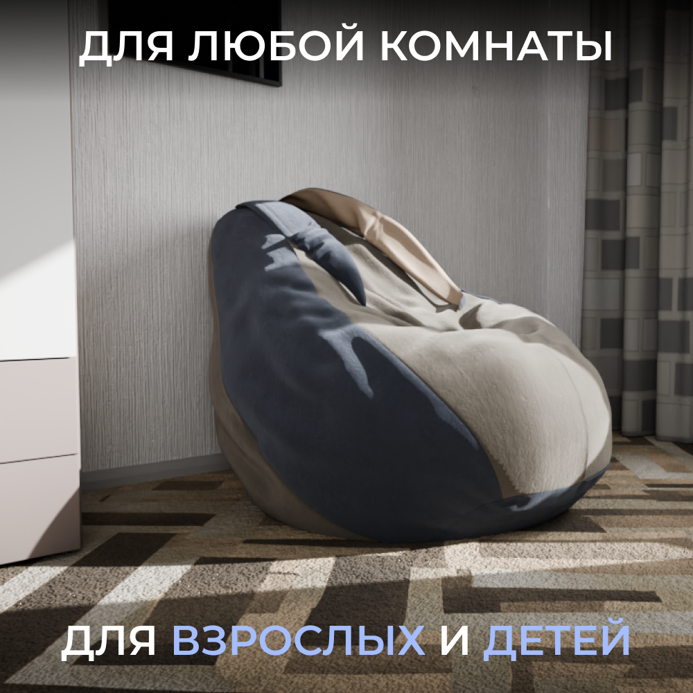Кресло-мешок YORCOM "Банни", коричневый- синий. велютта 23-26 размер XXL, для детской и гостиной