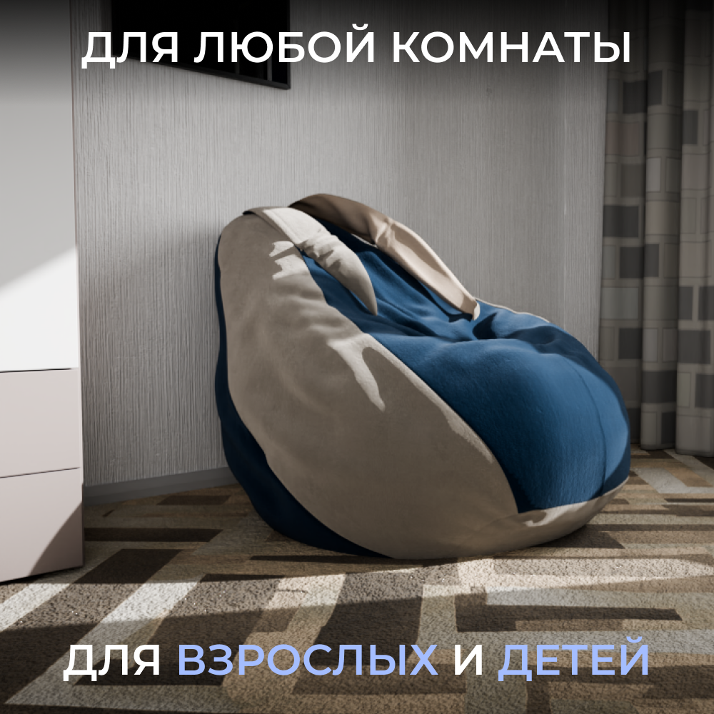 СохранитьКресло-мешок YORCOM "Банни", синий-белый . велютта 26- 01 размер XXL, для детской и гостиной интересное: