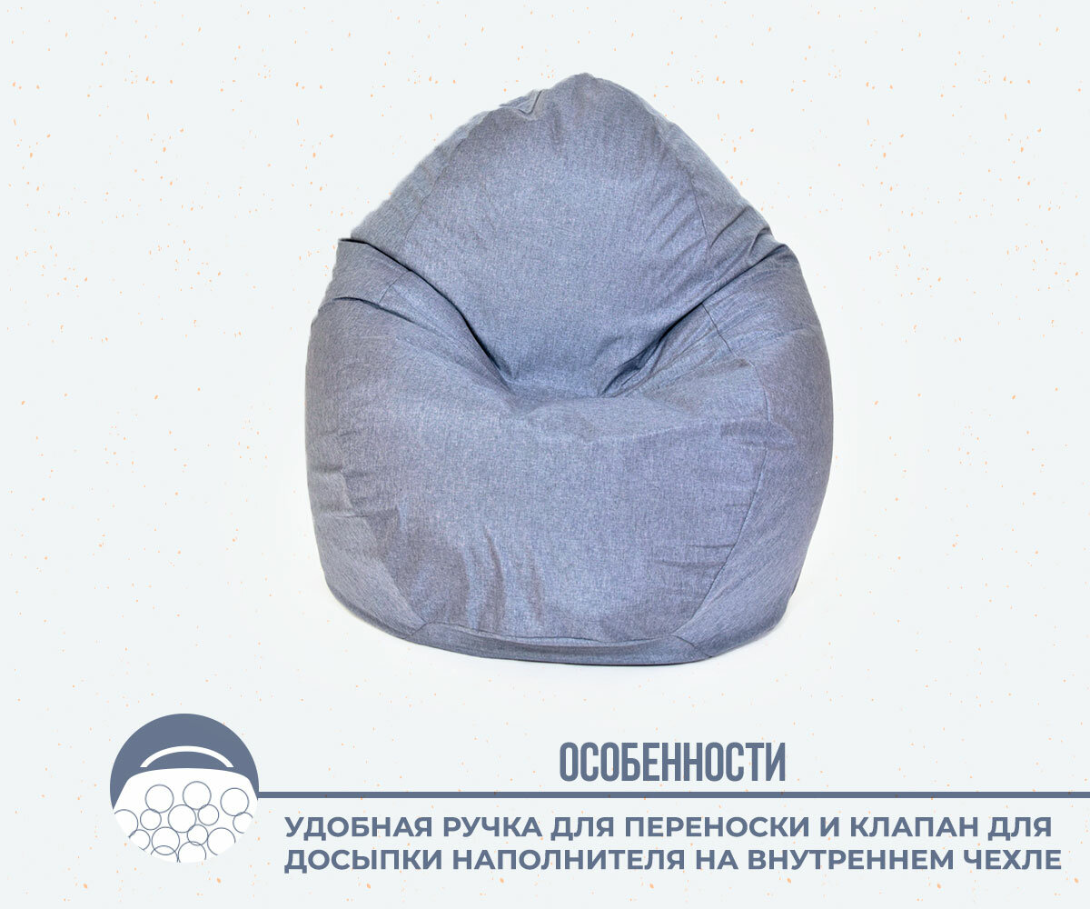 Кресло-мешок игровое большое WOWPUFF "СТАДИ" XXXL, съемный чехол, оксфорд синий