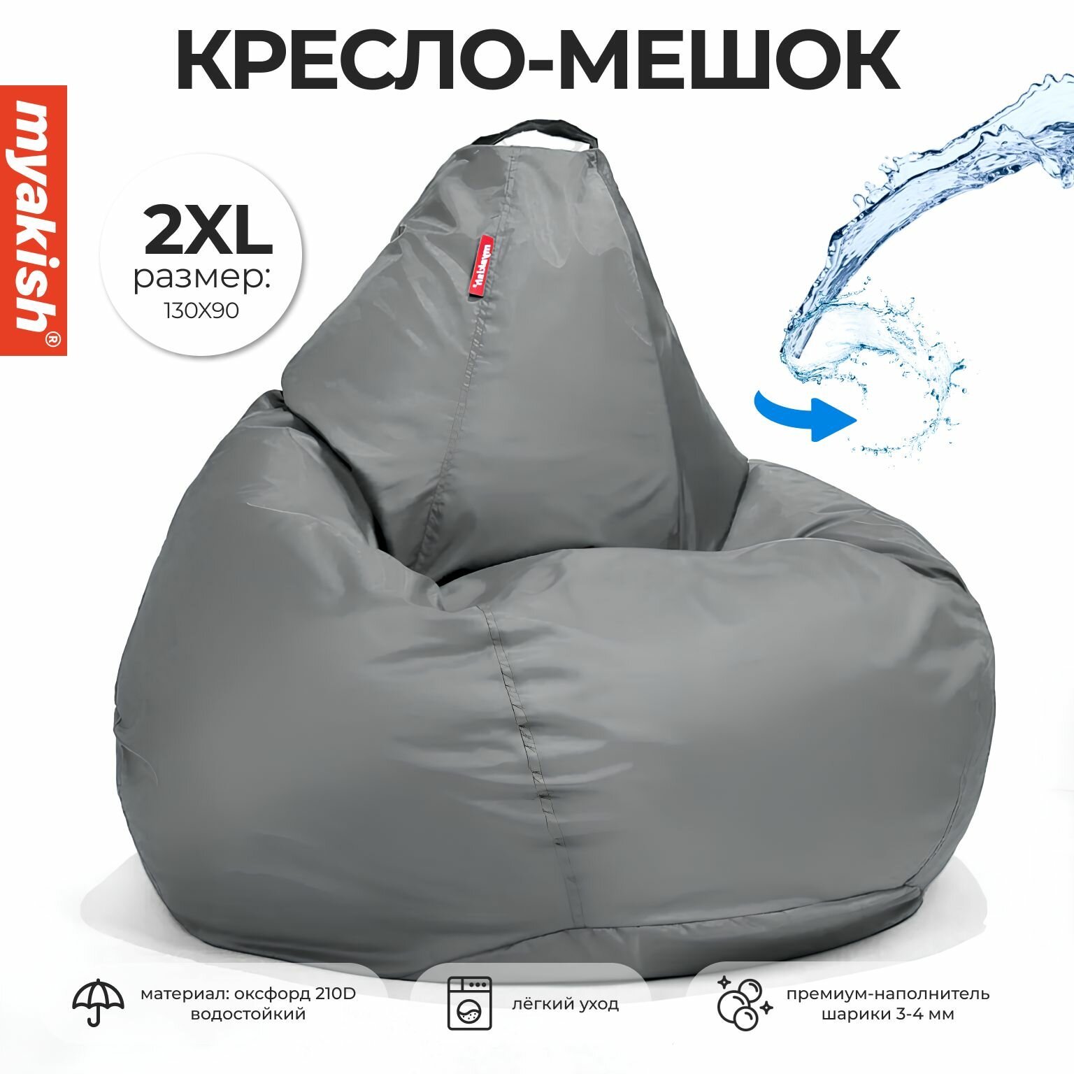Кресло-мешок Myakish "Оксфорд", форма груши, съёмный чехол, цвет серый, 2XL интересное: