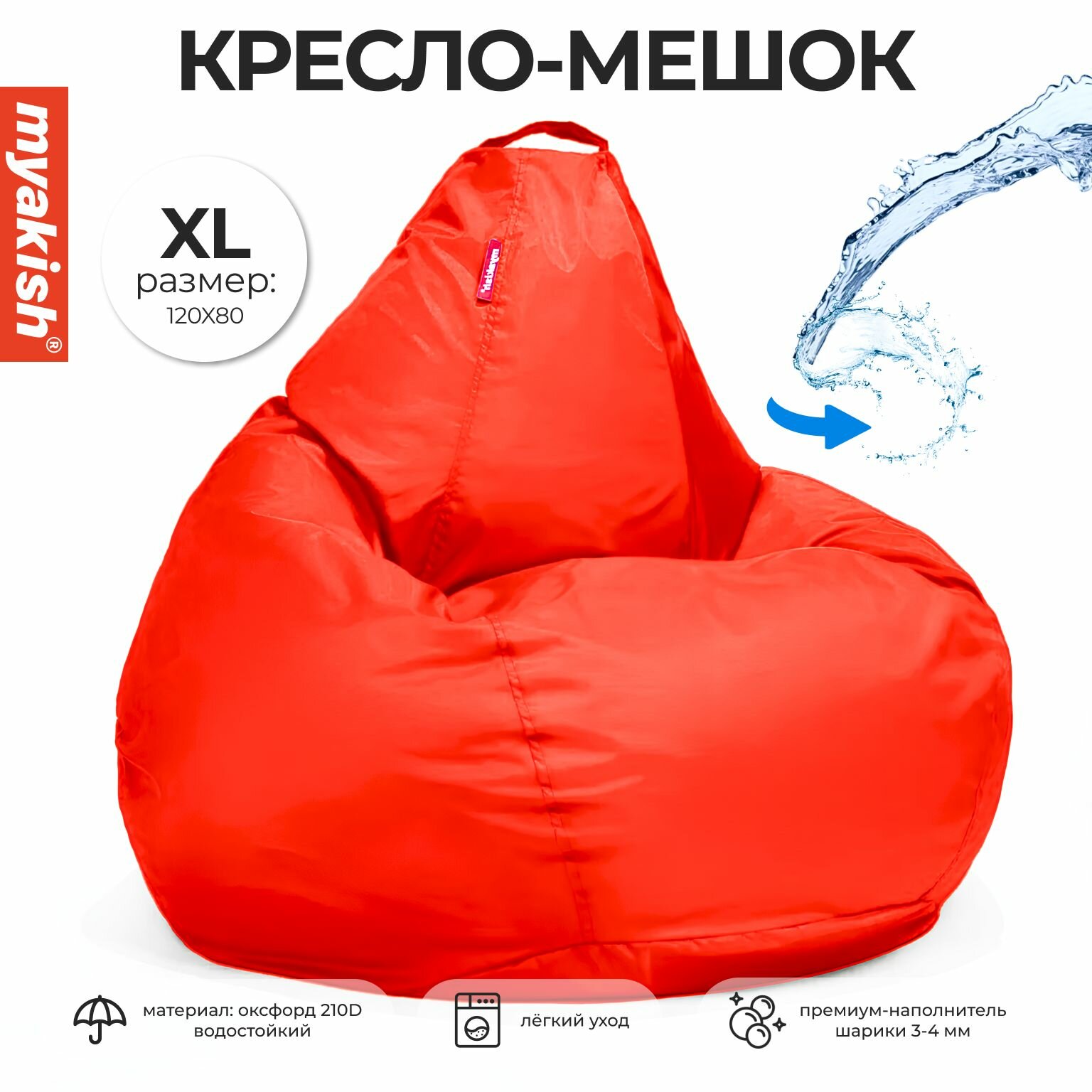 Кресло-мешок Myakish "Оксфорд", съемное, красное, форма груша, наполнитель пенополистирол, XL интересное: