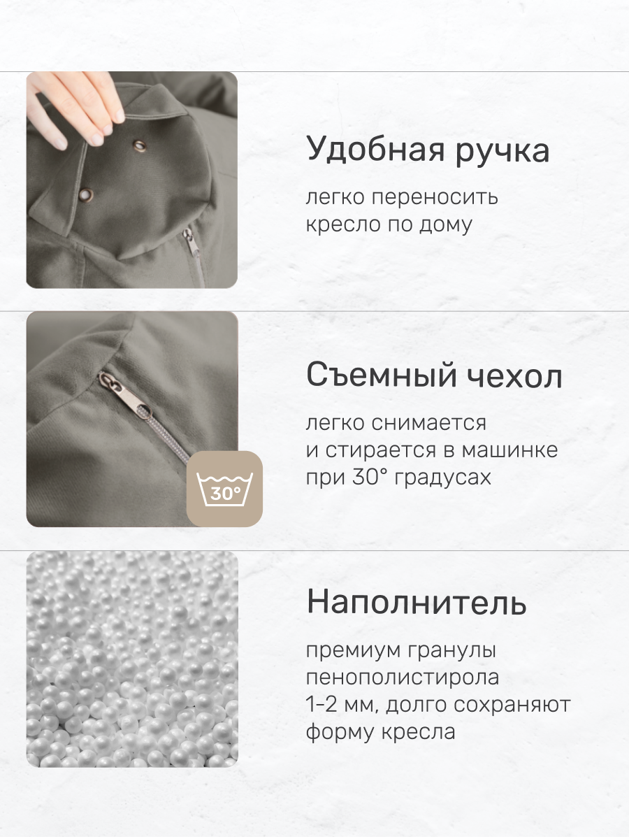 СохранитьКресло мешок Laavi Home кресло груша, размер ХXXXL, мебельный велюр, серый интересное: