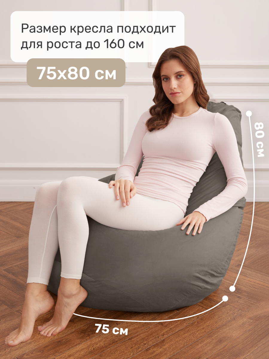 СохранитьКресло мешок Laavi Home кресло груша, размер ХXL, мебельный велюр, серый интересное: