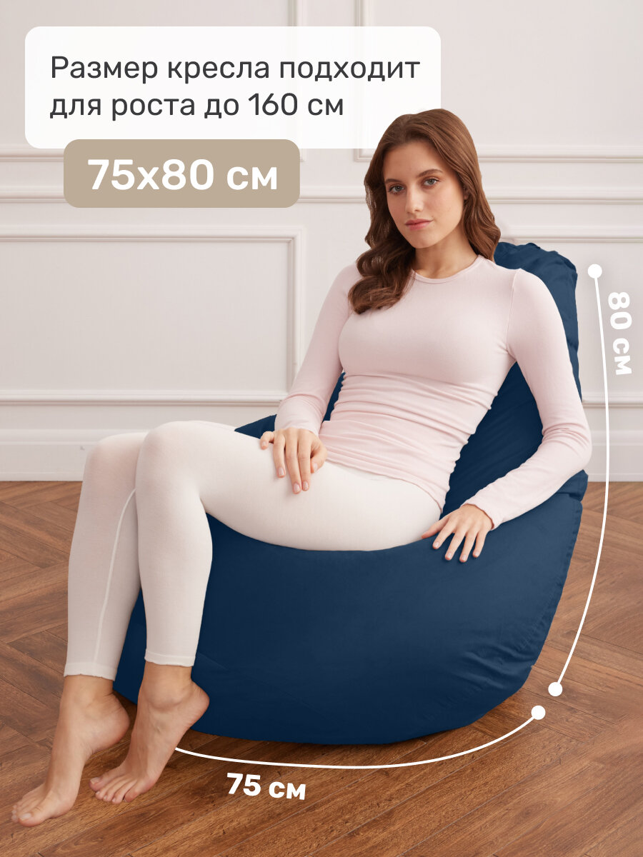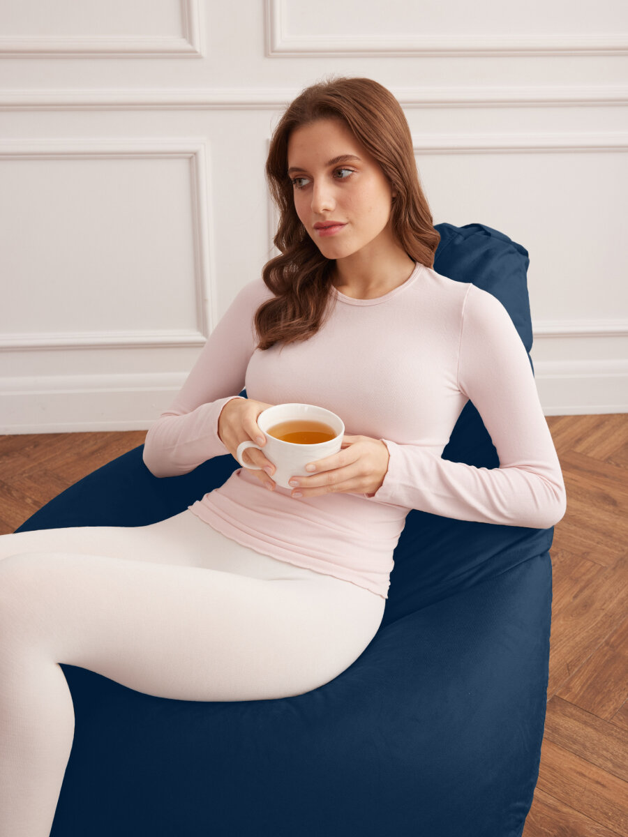 Кресло мешок Laavi Home кресло груша, размер ХXXXL, мебельный велюр, темно-синий