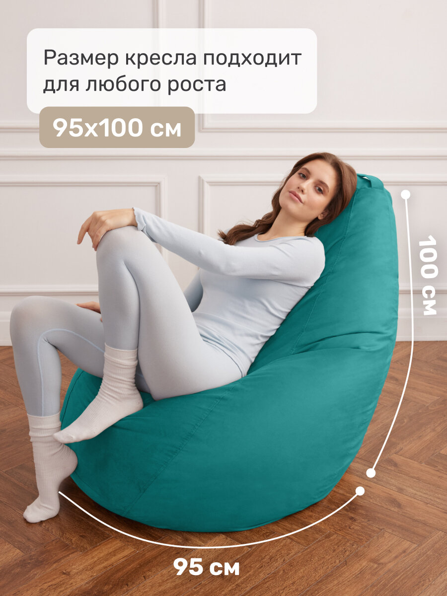 Кресло мешок Laavi Home кресло груша, размер ХXXL, мебельный велюр, бирюза