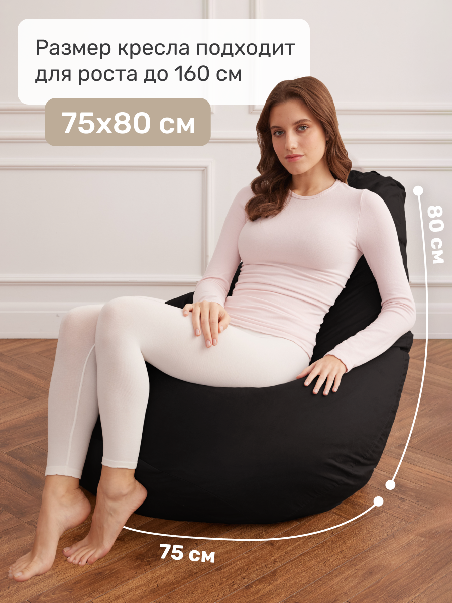 Кресло мешок Laavi Home кресло груша, размер ХXXXL, мебельный велюр, черный