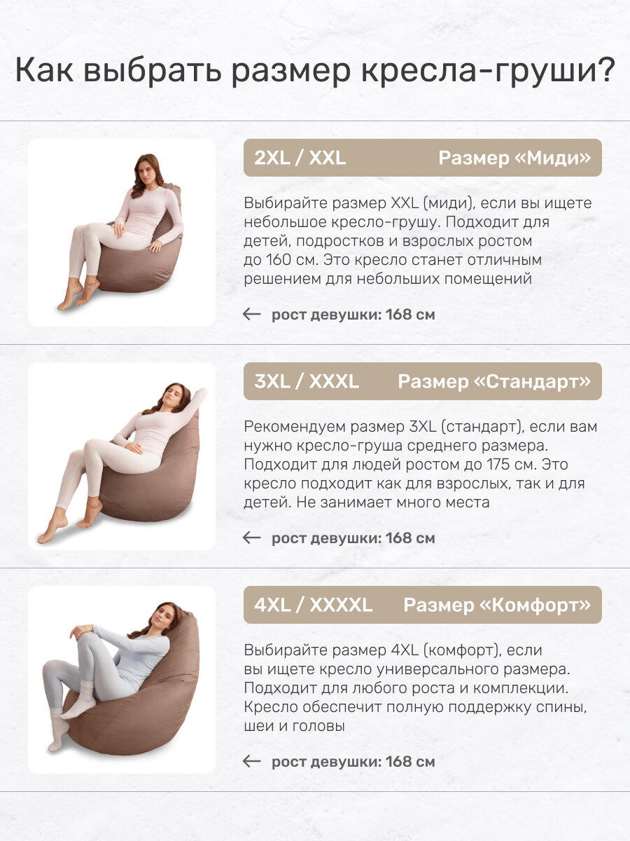 Кресло мешок Laavi Home кресло груша, размер ХXL, мебельный велюр, сталь
