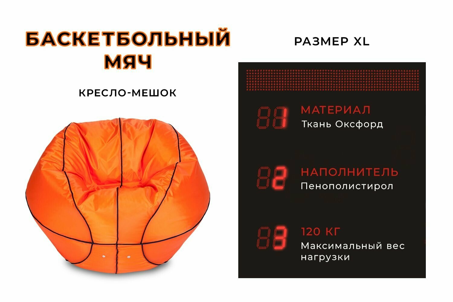 Кресло-мешок Баскетбольный мяч, малое 70 см, оксфорд водоотталкивающая, оранжевый/черный интересное: