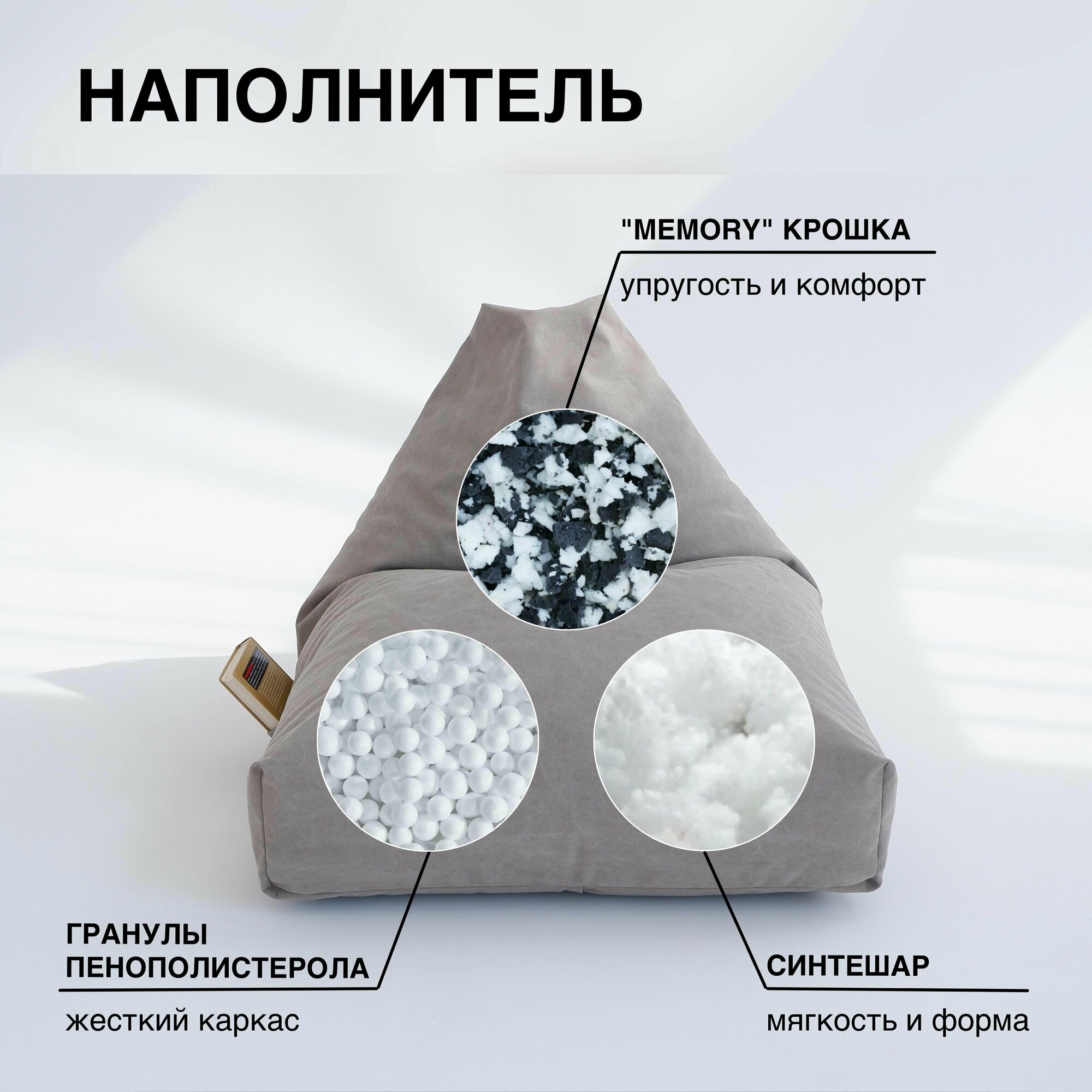 Кресло-мешок груша Ромбус серый 120х80 размер XXL, Чудо Кресло, Хлопок Нейлон, ручка, люверс, молния, пуфик мешок