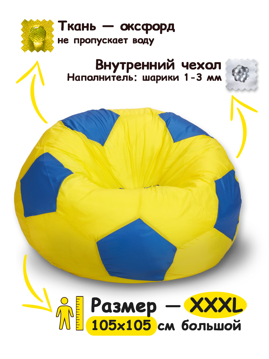 Купить Кресло-мешок Пуффбери «Мяч», размер XXXL большой, Оксфорд Желтый и синий