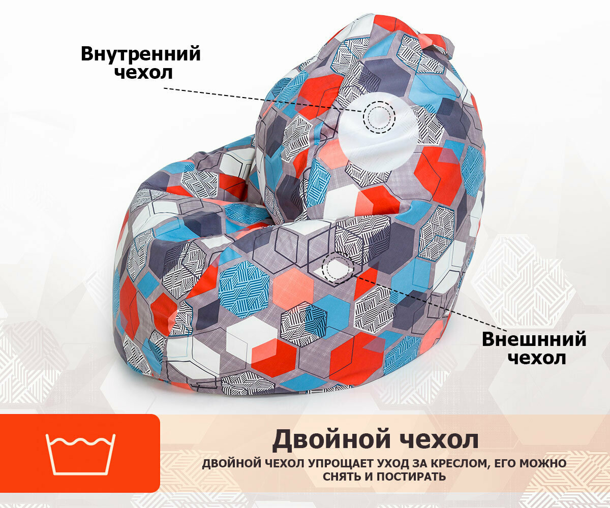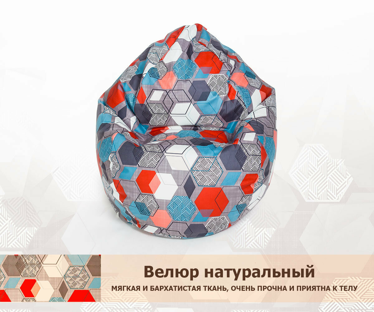 Кресло-мешок игровое WOWPUFF "МАКСИ" XXXXXL велюр принт геометрия слейд интересное: