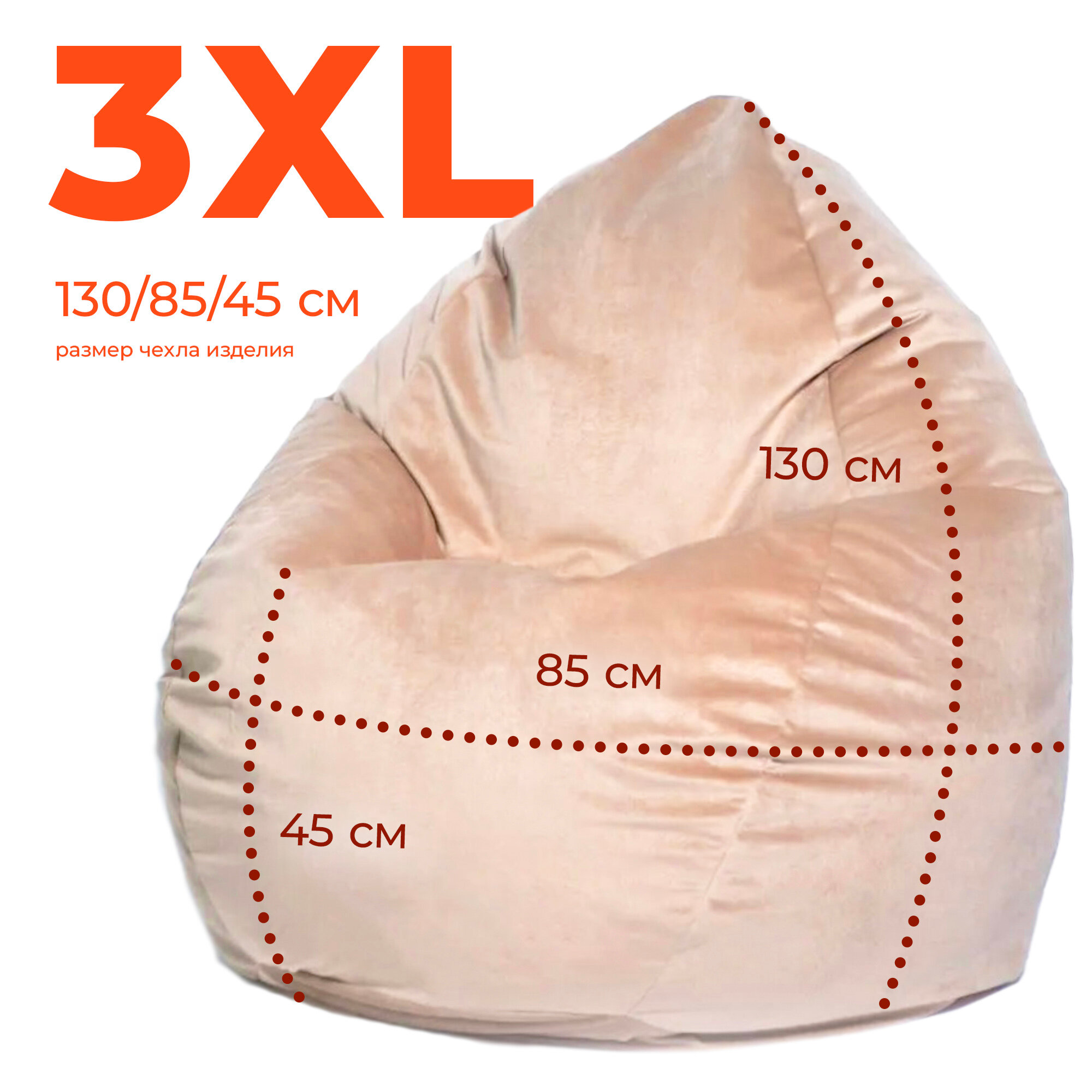 Кресло-мешок игровое большое WOWPUFF "Стади" XXXL, съемный чехол, велюр бежевый интересное: