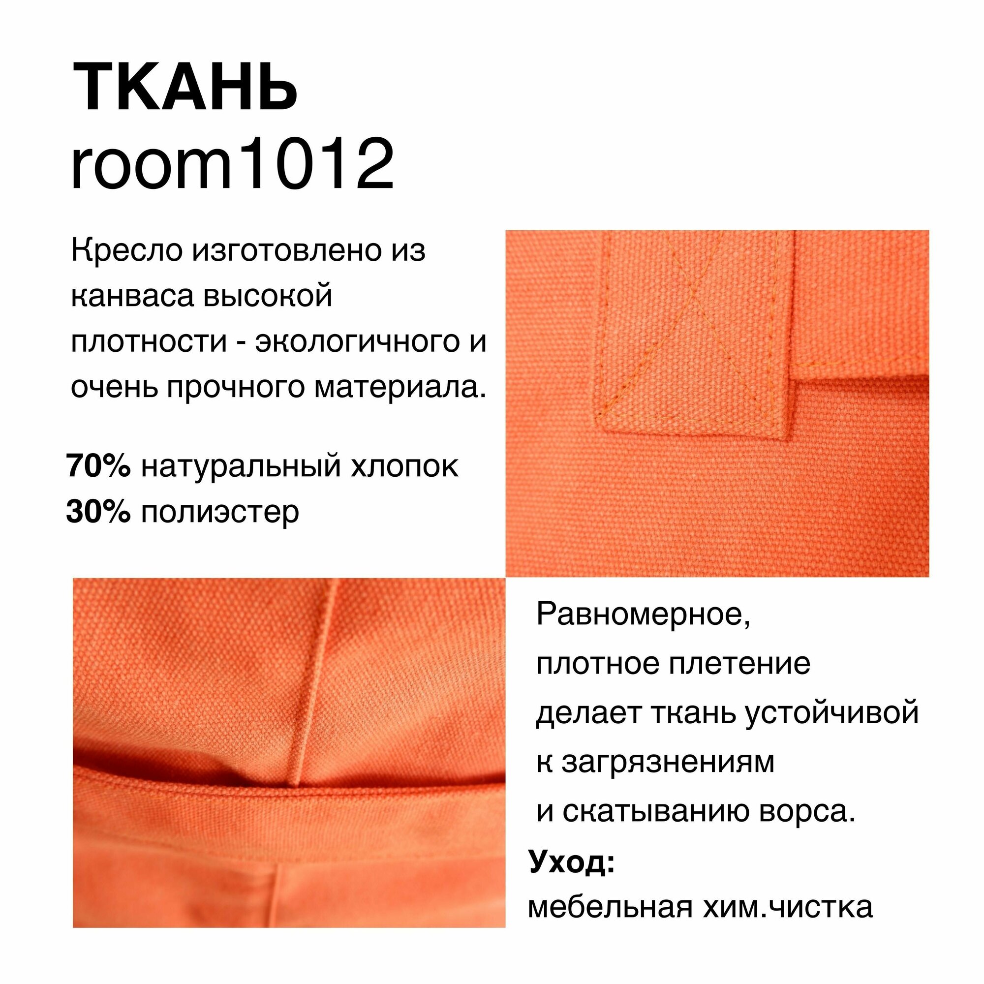 Дизайнерское бескаркасное кресло мешок Натуральный хлопок. Скандинавский стиль. Кресло L. Цвет Оранжевый интересное:
