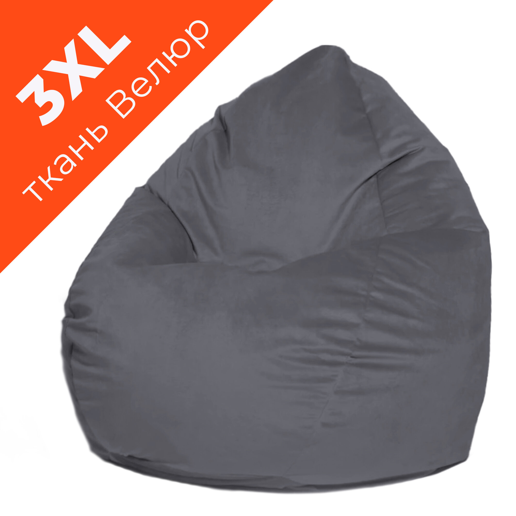 Купить Кресло-мешок игровое большое WOWPUFF "Стади" XXXL, съемный чехол, велюр графит