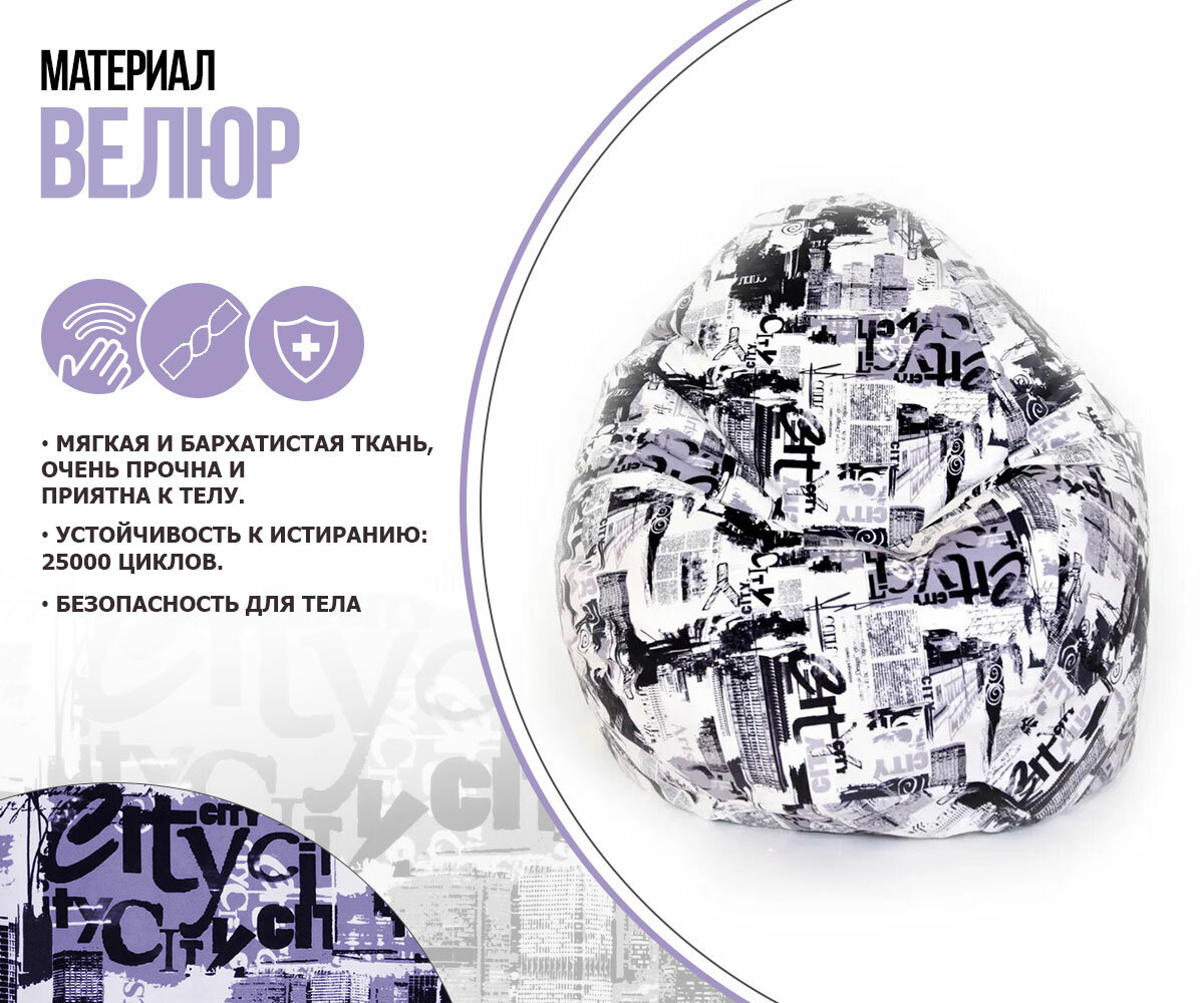 Кресло-мешок игровое большое WOWPUFF "Стади" XXXL, съемный чехол, велюр газета