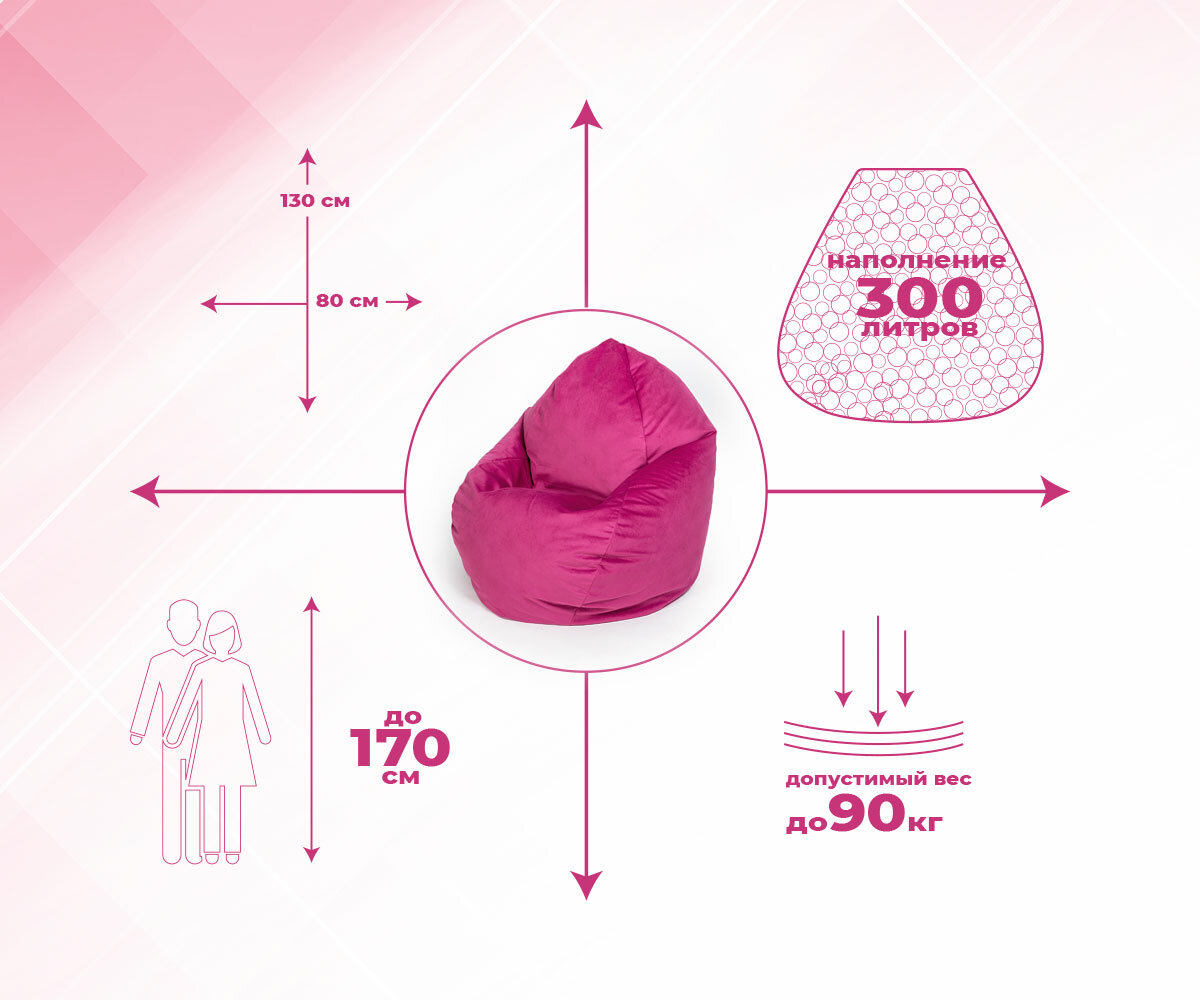 СохранитьКресло-мешок игровое большое WOWPUFF "Стади" XXXL, съемный чехол, велюр малина интересное: