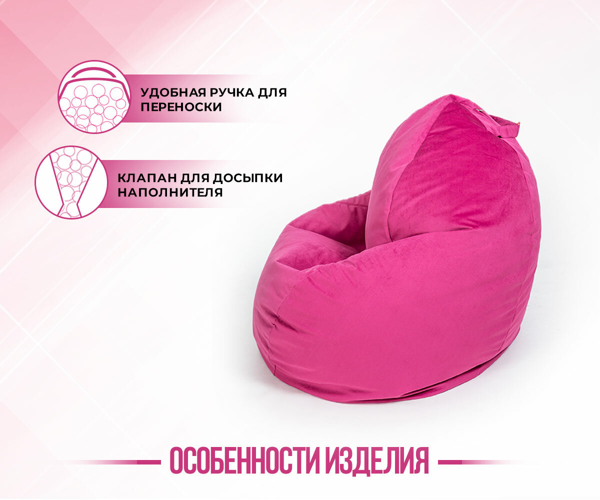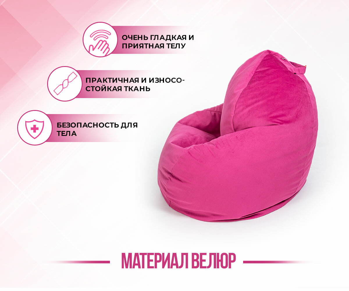 Купить Кресло-мешок игровое большое WOWPUFF "Стади" XXXL, съемный чехол, велюр малина