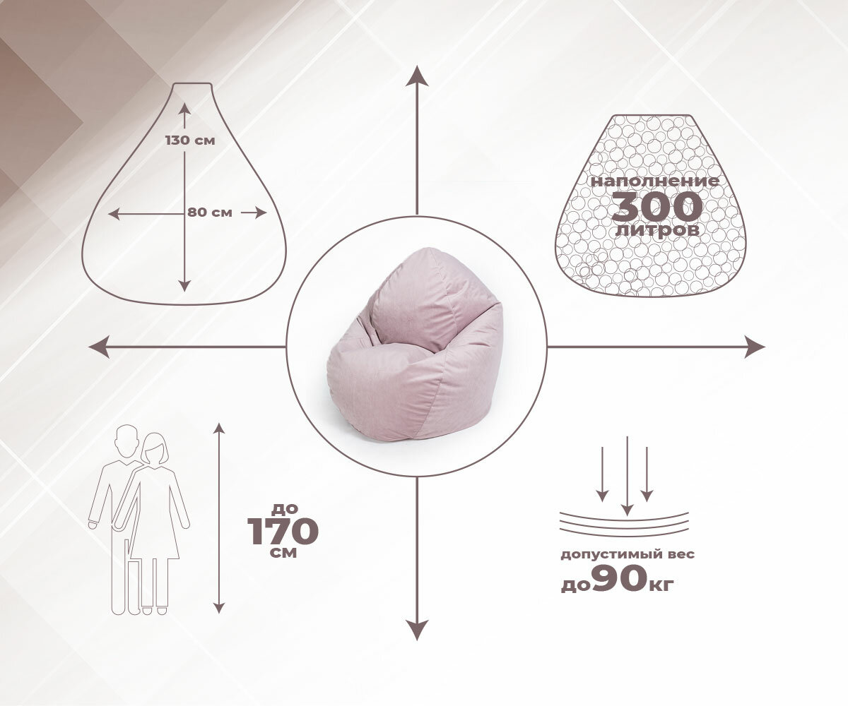 СохранитьКресло-мешок игровое WOWPUFF "Стади" XXXL, съемный чехол, велюр пыльная роза интересное:
