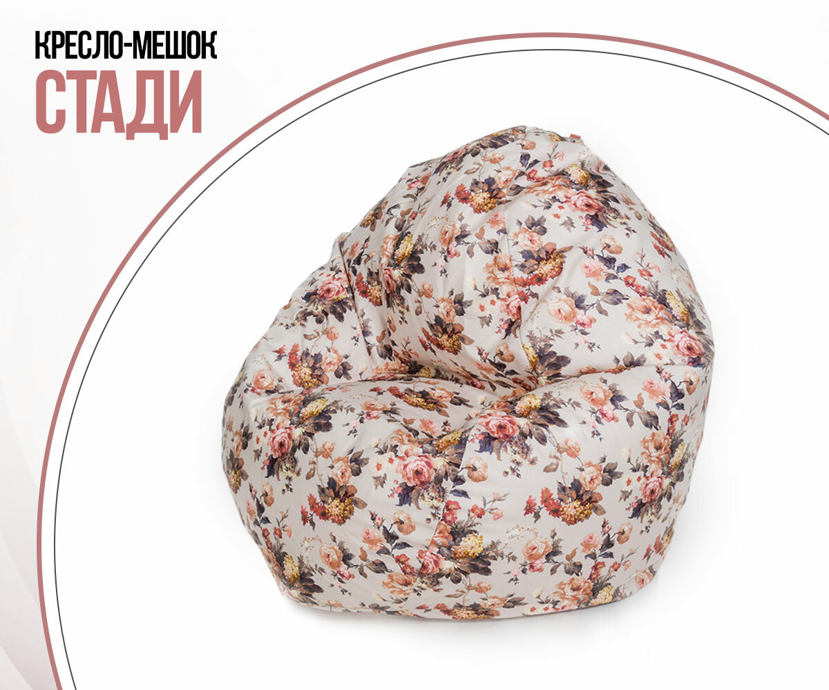 Кресло-мешок игровое большое WOWPUFF "Стади" XXXL, съемный чехол, велюр аркадия мульти