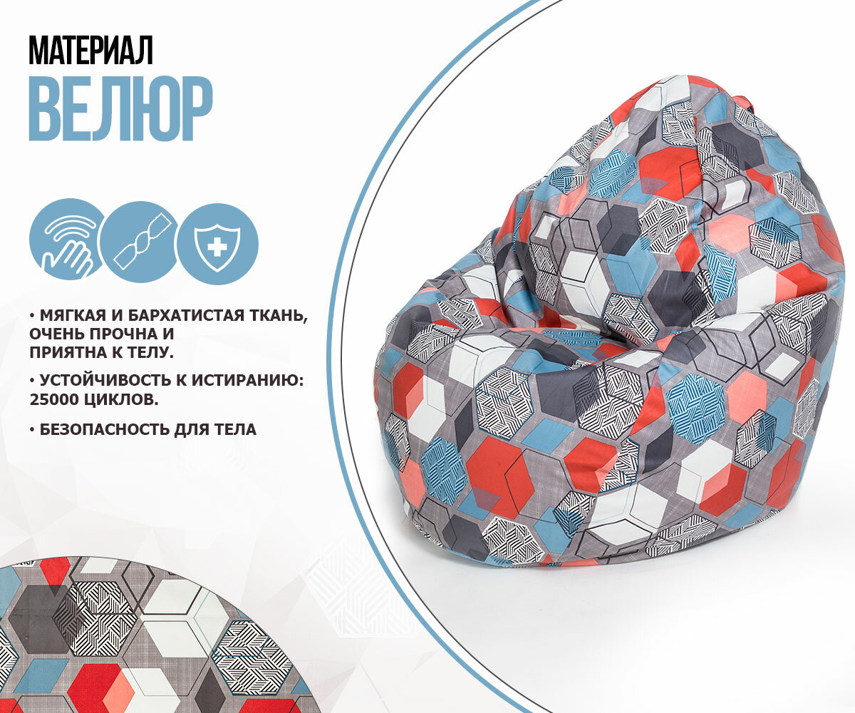 Кресло-мешок игровое большое WOWPUFF "Стади" XXXL, съемный чехол, велюр геометрия мульти