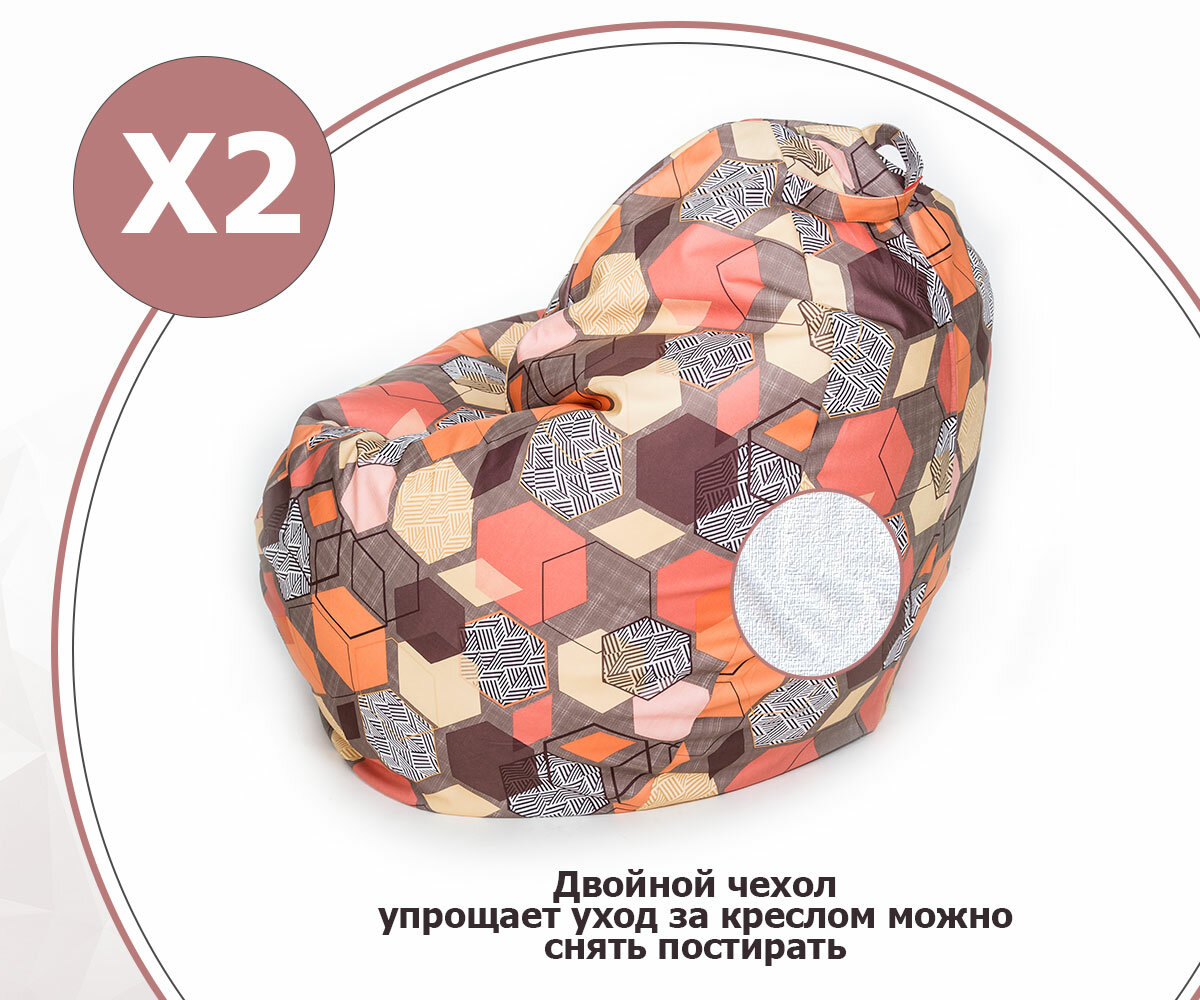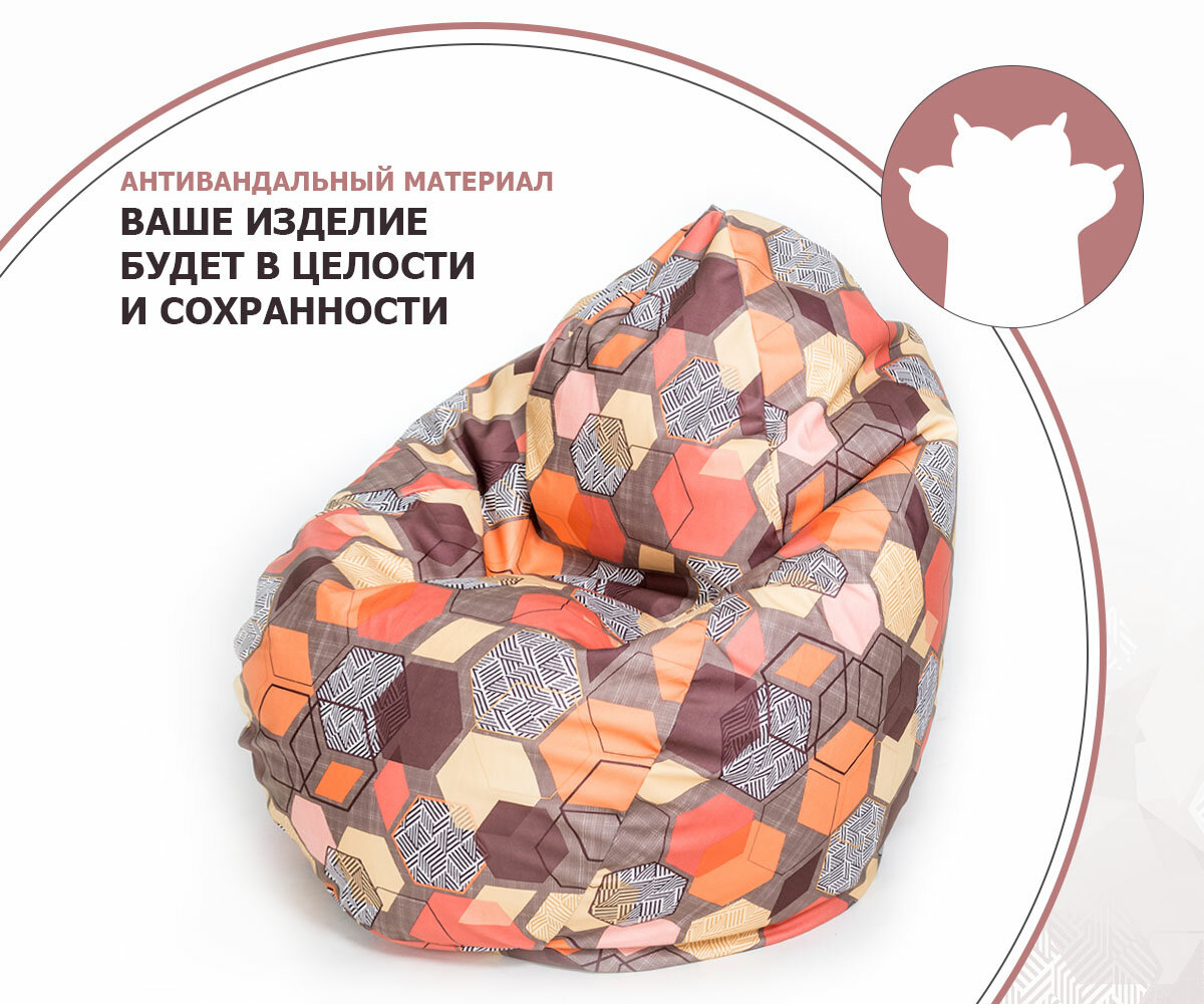 Кресло-мешок игровое большое WOWPUFF "Стади" XXXL, съемный чехол, велюр геометрия мульти