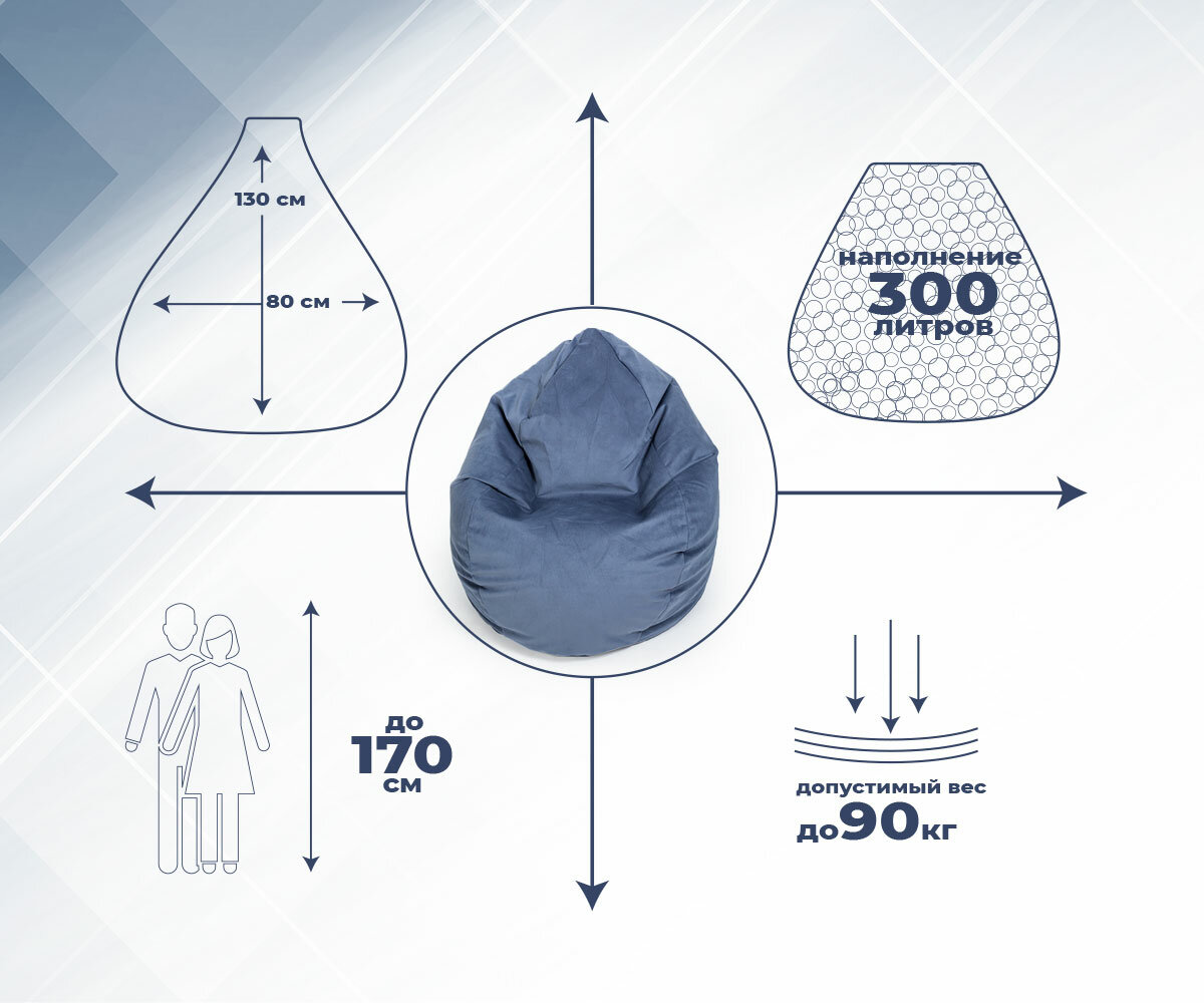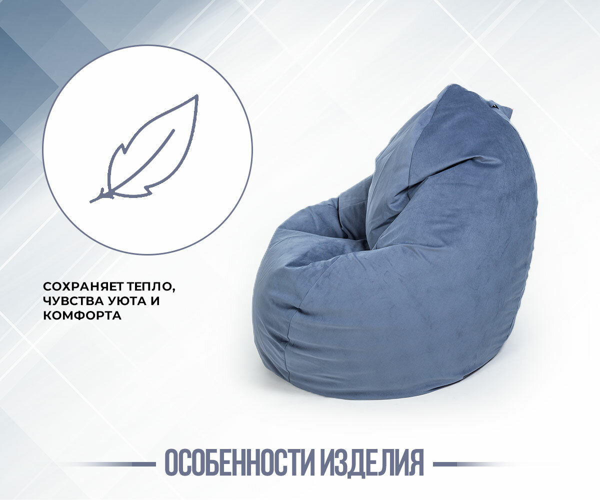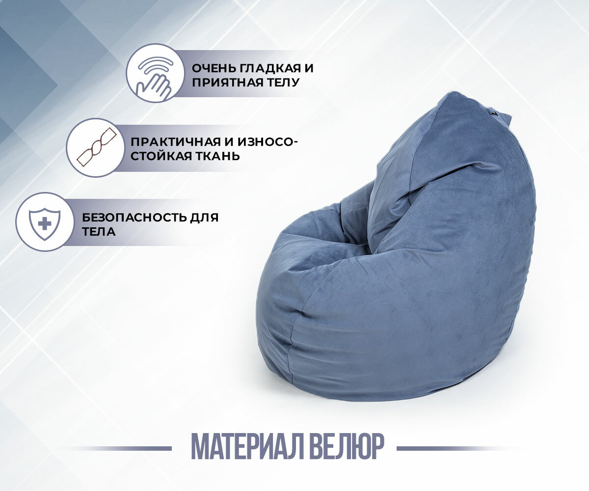 Кресло-мешок игровое большое WOWPUFF "Стади" XXXL, съемный чехол, велюр синий