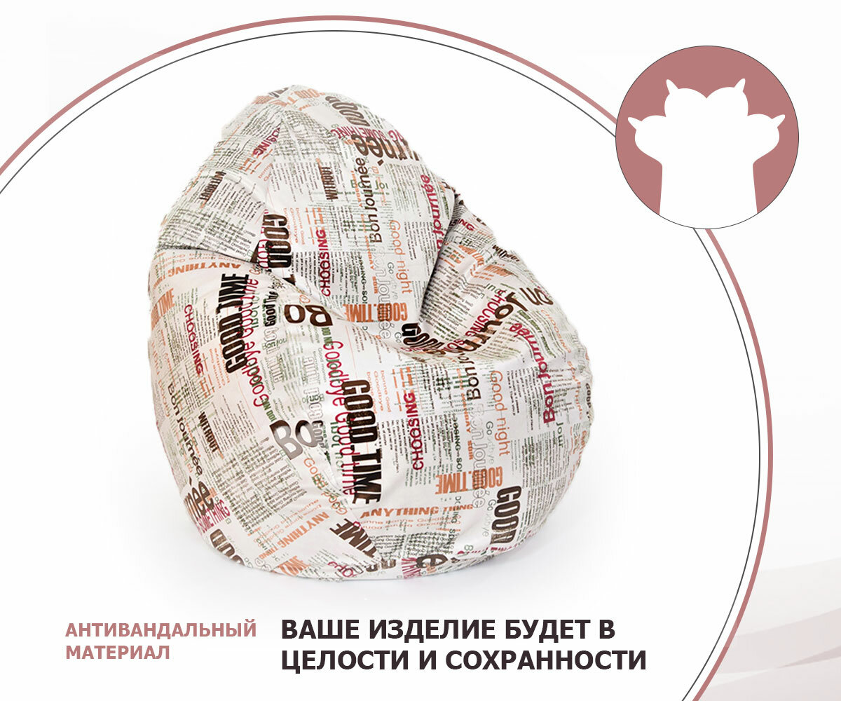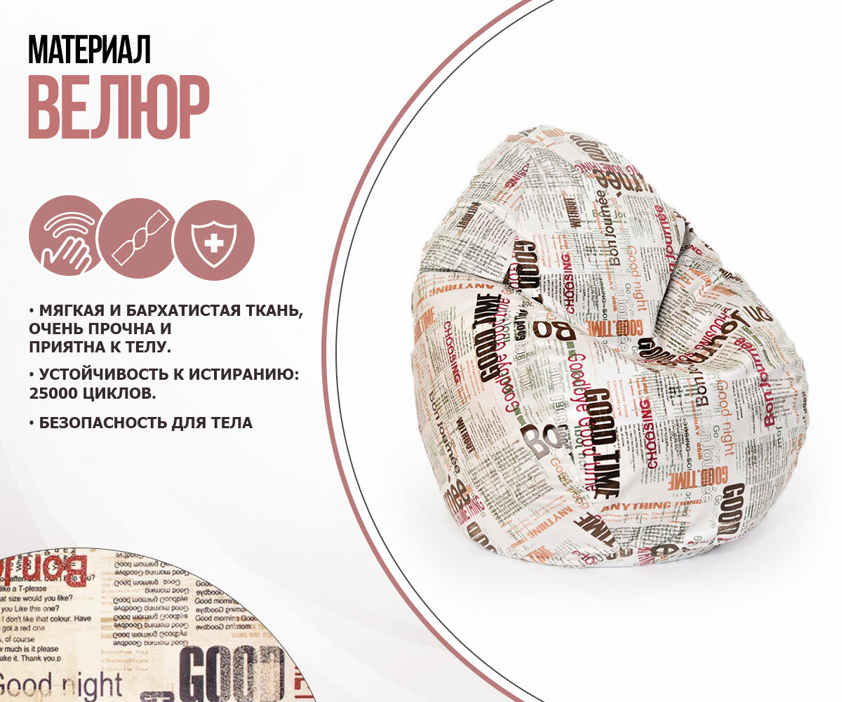 Купить Кресло-мешок игровое большое WOWPUFF "Стади" XXXL, съемный чехол, велюр газета