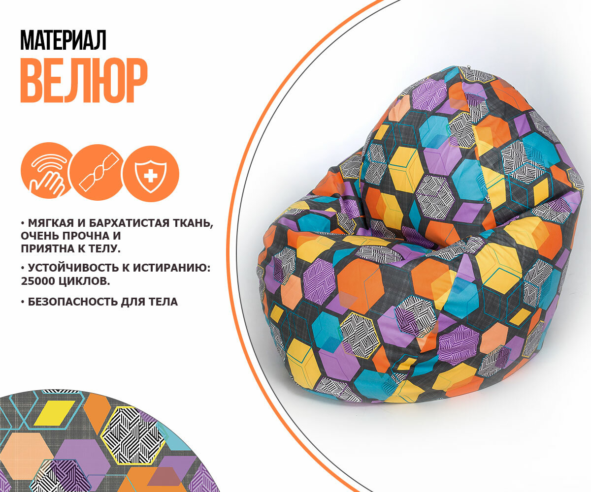 Купить Кресло-мешок игровое большое WOWPUFF "Стади" XXXL, съемный чехол, велюр геометрия мульти