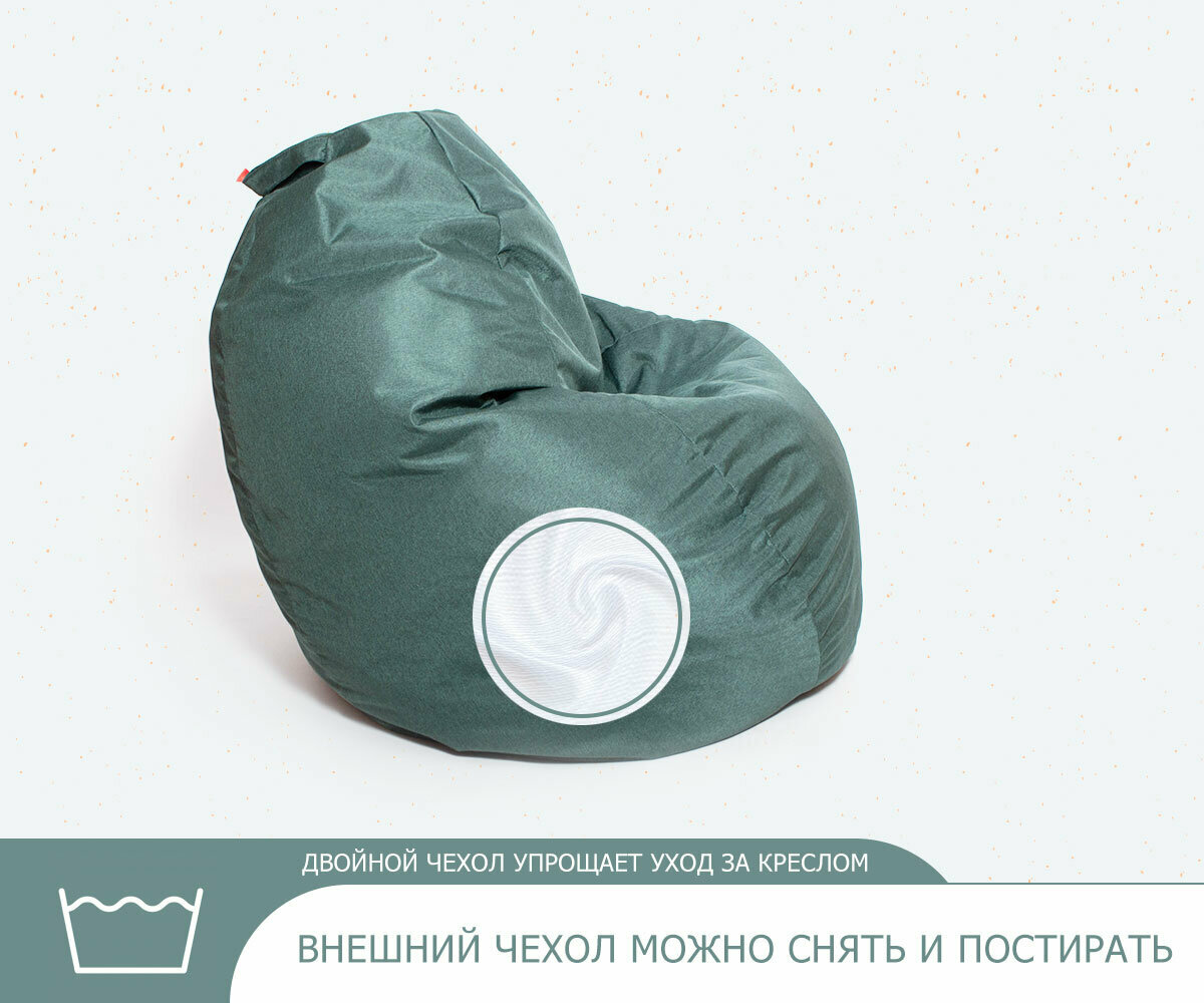 Кресло-мешок игровое WOWPUFF "Макси" ХXXXXL рогожка малахит, съемный чехол интересное: